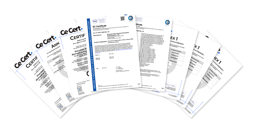 2022年5月,新产业生物自主研发的乙型肝炎病毒表面抗体、乙型肝炎病毒e抗原、乙型肝炎病毒e抗体、乙型肝炎病毒核心抗体、乙型肝炎病毒核心抗体IgM等5个项目获欧盟CE list A认证。同时,也成为中国第一家HBV、HCV、HIV拿齐CE list A认证的化学发光厂家。