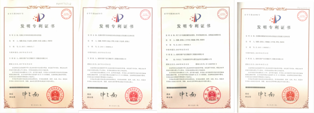 新产业生物自主研发的乙肝(ZL 201510069151.7)、丙肝(ZL 201510068054.6)、艾滋(ZL 201510069549.0),梅毒(ZL 201510069547.1)检测试剂盒均已获得国家发明专利。