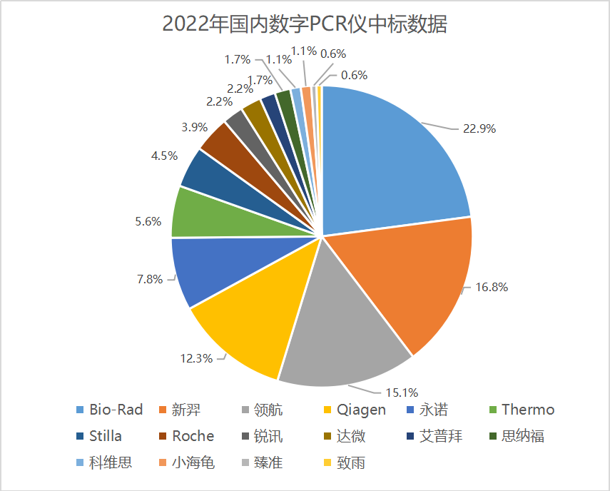 来源:IVD资讯、体外诊断价值圈、IVD研究社、基因Talks、中国政府采购网、中国食品药品检定研究院等 从凯杰三季度财报来看,由于仪器销售和耗材使用增加,QIAcuity数字PCR的销售额以恒定汇率计算增长了40%。市场成熟度高的荧光定量PCR技术,伴随着疫情的消失迷失方向,产品同质化、内卷严重。据媒体报道,医疗机构有数万套荧光PCR仪束之高阁。 常规PCR内卷,打开了数字PCR的一扇窗。 数字PCR(Digital PCR,简称:dPCR)是第三代PCR技术,是生命科学和医学诊断的关键技术之一。核心思路是将模板分子稀释并平均分配到几万或几十万个独立反应单元中,进行PCR扩增,通过PCR终点信号“有或无”来实现不依赖于标准品和标准曲线的单分子绝对定量。 相比于荧光PCR技术(第二代PCR),dPCR具有诸多优势,主要体现在以下几个方面:高灵敏度,可实现单分子级检测;定量准确,不依赖标准物质与标准曲线,可以实现绝对定量,是绝对定量的金标准;高稳定性,善于在复杂背景模板的干扰下对罕见的靶标进行检测,且对抑制剂的耐受性好。 根据高禾投资研究中心预测,2020年至2024年中国dPCR行业市场规模仍将保持较高增长速度,市场规模将从21.33亿元,增长至70.11亿元,年复合增长率为34.65%。 在国际上,伯乐、凯杰、赛默飞、罗氏、因美纳等公司纷纷通过收购、投资等方式布局dPCR业务;在国内,诞生了如新羿生物、锐讯生物、领航基因、小海龟科技、臻准生物、科维思、永诺生物、思纳福医疗等IVD企业,迈克生物、新产业、安必平等上市IVD企业都投资了dPCR企业。 目前dPCR应用已覆盖多个领域。 一是感染性疾病的早期和快速诊断。利用数字PCR高灵敏度和绝对定量的特点,能够对病原微生物和耐药基因进行动态监控,为临床方案的制定与调整提供参考。 二是肿瘤基因检测,为肺癌、乳腺癌、消化道肿瘤、甲状腺癌等病种的早期预警、预后判断、疗效预测和评价提供可靠的检测产品。凭借其超高敏感性和绝对定量的优势,数字PCR尤其适合肿瘤的液体活检,能够克服该类标本中肿瘤来源核酸含量低和背景复杂的不足,在微小残留疾病(MRD)、疗效评价、疾病进展以及克隆进化的动态监测方面都具有良好的应用前景。 三是出生缺陷筛查,可以更快、更便宜、更准确地开展唐氏综合征等染色体疾病和SMA(脊髓性肌萎缩症)等遗传性疾病的筛查。数字PCR技术,可以在样本量相对稀有的情况下保证染色体拷贝数定量的准确度,满足了唐氏综合症筛查的技术需求。对于SMN2基因拷贝数的检测准确、快速、经济,可满足SMA临床基因检测和产前诊断的需求。 数字PCR技术的先进性及重要价值已经成为行业共识,随着检测市场的持续增长,检测要求的不断提高,数字PCR势必会成为临床分子诊断的关键性技术平台,迎来快速增长。 全国公开招投标结果显示自2013年开始,数字PCR年中标数从个位数时代进入年中标量过百,尤其是2021和2022两年,数字PCR每年中标数超过300余套,从高校科研院所、海关、疾控、医院等各大领域均在布局数字PCR。除了以上政府招标部门外,工业领域包括分子诊断领域、计量定值和生物制药等领域,更是数字PCR技术的青睐者,预计工业客户每年采购的数字PCR不低于政府招标采购领域。因此数字PCR已成为国家和全行业认可与肯定的技术,未来发展空间巨大。 2023年可能成为数字PCR临床应用爆发元年。自2019年以来,国内众多IVD厂家都在布局数字PCR临床检测试剂盒(肿瘤、病原体、生殖健康等)。继北京新羿生物科技有限公司于2022年1月自主研发的新型冠状病毒(2019-nCoV)核酸检测试剂盒获得Ⅲ类医疗器械注册证之后。广州优泽生物技术有限公司的“MPR1A/PLAC8基因甲基化检测试剂盒(数字PCR法)”获得国家药监局NMPA的批准。这也意味着会有越来越多的基于数字PCR方法的试剂获得注册证,背后是无数IVD厂家在基于数字PCR在排队报证。 数字PCR的春天到了。 从2022年及今年上半年招投标数据来看,国产数字PCR快速崛起,各家订单呈快速增长。 近日,国家发改委发布《关于<产业结构调整指导目录(2023年本,征求意见稿)>公开征求意见的公告》,新型基因、蛋白和细胞诊断设备,新型医用诊断设备和试剂。《“十四五”医疗装备产业发展规划》中,重点发展诊断检验装备。从先进性和创新性来讲,数字PCR是国家重点鼓励的创新方向。 国家认可,试剂获证加速,国际知名品牌和国内上市公司对数字PCR的布局更增强了行业对数字PCR的信心。数字PCR极有可能引领分子诊断未来10年黄金期的发展,成为分子诊断行业的新一代宠儿。 关于数字PCR 数字PCR是新兴起来的一种核酸分子绝对定量技术。该技术可直接获得DNA分子的拷贝数,实现起始样品中核酸分子的绝对定量,且无需标准品或内标。 数字PCR已经被广泛应用到医学、生物学等各个领域,如拷贝数变异、突变检测、复杂来源样品中低丰度核酸分子检测、NGS数据验证、miRNA等微小差异表达研究、单细胞基因表达分析等方面,在已知突变的癌症分子标志物的检测、传染病病原体检测、基因组三倍体分析和基因表达分析等领域展现了强大的优势。 |