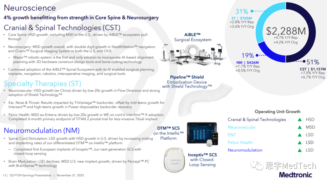 - 神经科学组合营收22.88亿美元,同比增长4.7%,有机增长4.2%;