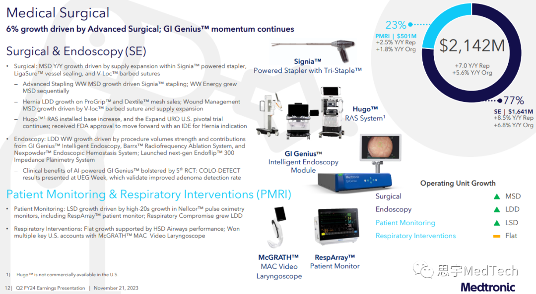 - 医疗外科组合营收为21.42亿美元,同比增长7.0%,有机增长5.6%;