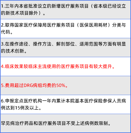 《试行办法》规定,创新医疗服务项目(含医用材料)须同时满足以下条件: