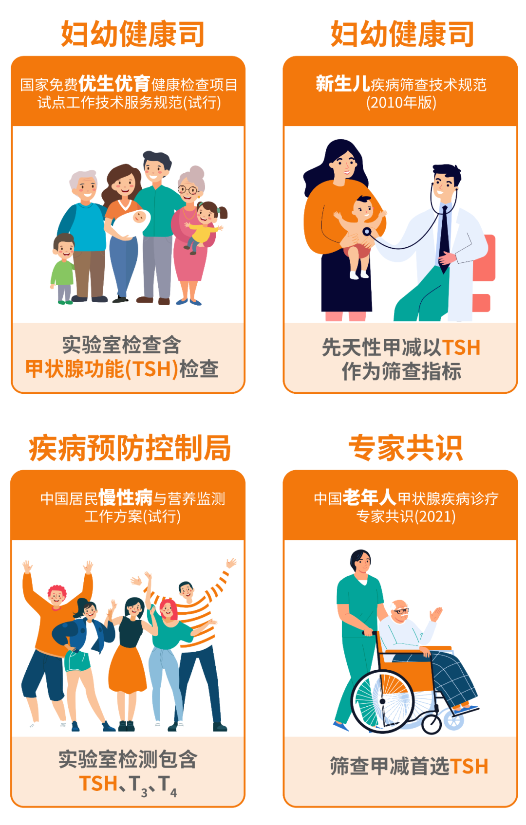 | 2023年9月《健康体检基本项目专家共识(2022)》1隆重发布,该共识为我国健康管理(体检)机构开展健康体检服务提供了基本参考依据。与前版共识相比,新版 《共识》主要新增“甲功检测”等内容。“甲功检测”成为和血脂、血糖等检查同等重要的必须检查项目。 甲功检测纳入新版 《共识》基本体检项目的依据 中华医学会健康管理学分会主任委员郭清教授在解读新版 《共识》时表示,我国甲状腺疾病发病率较高,危害广泛且起病隐匿。新版 《共识》将甲功检查纳入基本体检项目是顺应疾病管理的需求,有助于不同人群及早发现甲功异常,及时采取相应治疗措施。 新版 《共识》对于甲功检查的推荐项目为甲功五项,即总甲状腺激素(TT4、TT3)、游离甲状腺激素(FT4、FT3)和促甲状腺激素(TSH)。TSH是甲功异常最敏感和最早期的指标,此前已被多项国家政策、共识推荐为筛查甲功异常首选指标,这也是此次 《共识》新增“甲功检测”建议的重要依据。 甲状腺功能异常对不同人群的影响 参考文献: 1. 中华医学会健康管理学分会,《中华健康管理学杂志》编辑委员会. 健康体检基本项目专家共识(2022). 中华健康管理学杂志,2023,17(09):649-660. DOI:10.3760/cma.j.cn115624-20230628-00395 2. Woodhead, J. Stuart, and Ian Weeks. "Magic Lite design and development." Journal of Bioluminescence and Chemiluminescence 4.1 (1989): 611-614. 3. Bounaud M P, Bounaud J Y, Bouin-Pineau M H, et al. Chemiluminescence immunoassay of thyrotropin with acridinium-ester-labeled antibody evaluated and compared with two other immunoassays[J]. Clinical chemistry, 1987, 33(11): 2096-2100. |