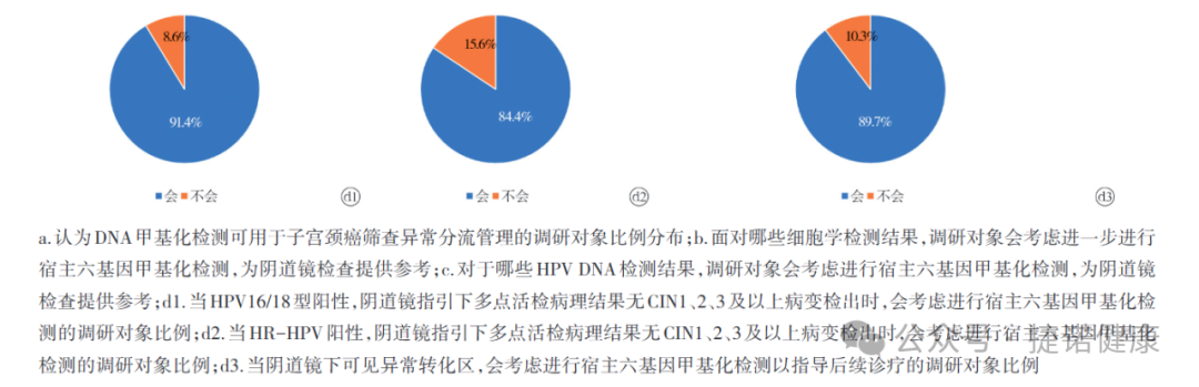 本次调研结果提示大部分临床医务工作者知晓DNA甲基化检测可用于子宫颈癌初筛,并且64.2%调研对象倾向选择多基因甲基化检测用于子宫颈癌的初筛。