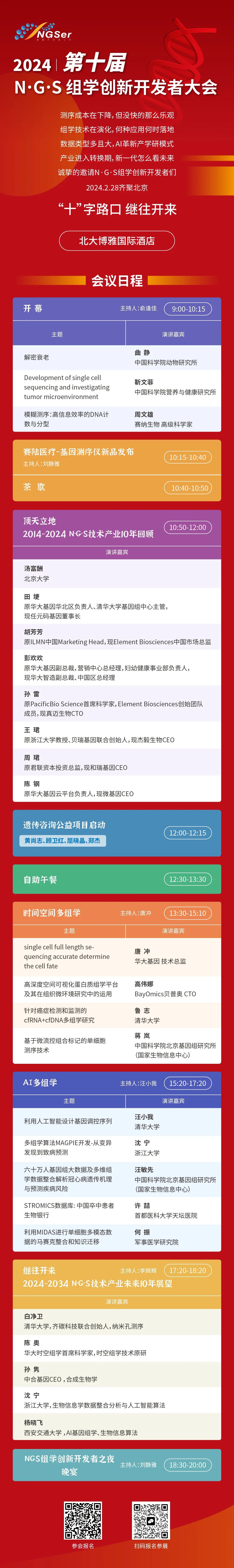 扫码上面二维码或点击“阅读原文”快捷报名, 现场交流更充分~ N·G·S:Next Generation Solution 主办方 基云惠康、中国生物医学工程学会医学检验工程分会 协办支持方 测序中国、元码基因、杰毅生物、Element BioSciences、羿检医学、华大智造、奥盛仪器、贝奥普生物、赛陆医疗、树兰医疗、贝壳社、民福福利基金会、赛纳生物、普译生物、顾大夫工作室、会元遗传、基因慧 媒体单位 测序中国、转化医学网、基因科技网、小桔灯网、生信技能树、基因江湖、我是建设者、动脉网、精准家、GPB、HIPLOT、肽度TIMEDOO |