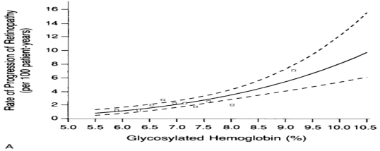 我特别关注到,在这篇经典文章的讨论中,提及一个问题。即,对IDDM病人的强化治疗延缓了症状和减慢了临床上重要的视网膜病变的进程,包括威胁视力的病变,肾病和神经病变,约35%到大于70%。被研究的大量病人,包括一级预防队列的,和这个研究的长期随访阶段,提供了展现病人治疗的有效,在年龄、糖尿病期间、视网膜病变严重性程度、和糖化血红蛋白值的基础线。