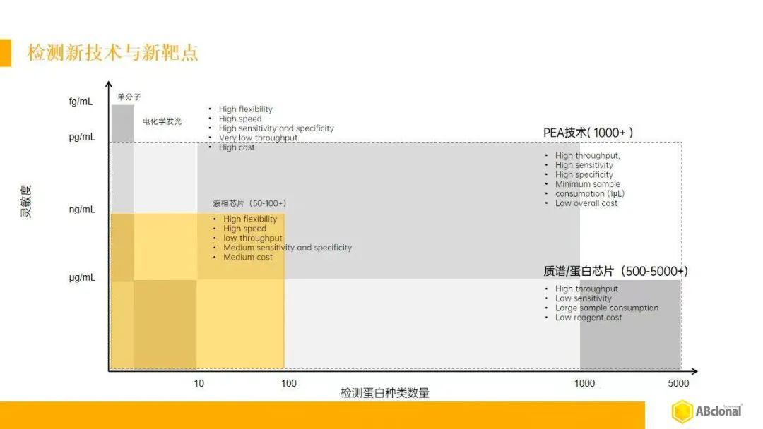 一、诊断标志物现状 后疫情时代,大众对自身健康的更多关注,涌现诸多未被满足的临床痛点。 很多疾病都缺乏准确且高效的临床诊断标志物,比如: ▸糖尿病并发冠心病超过40%,但诊断率只有6%,因为缺乏血清学诊断标志物导至不能提前筛查或者诊断该部分高危人群; ▸暴发性心肌炎因为其高临床死亡率和缺乏明确的血清学诊断标志物,且现有的诊断低效导至很多急性病人不能精准诊断和精准治疗; ▸在肿瘤诊断领域,很多经典肿瘤标志物精准诊断对应疾病的效果并没有那么准确,只能做到一个基础的辅助诊断,比如卵巢癌用单指标CA125的检测; ▸阿尔茨海默症(AD)作为神经性老年疾病一直缺乏早期提前诊断的精准标志物,全球每年因为该疾病付出了巨大的社会成本等等。 临床上类似于以上疾病的未被解决的痛点需求还非常的多,急需学术界从底层机制上的创新发现,解决没有准确的血清学诊断标志物技术难题。 在IVD产业界,化学发光属于诊断领域最大的市场,该领域存在两个维度的创新需求: 其一,是硬件平台的竞争,如快速的化学发光平台和流水线平台等; 其二,是应用领域和标志物菜单的竞争,如肿瘤标志物、甲状腺功能和心血管快诊等领域,以及各领域内创新诊断标志物的挖掘。 几十年来,化学发光菜单一直缺乏新的重磅标志物出现,平台菜单的同质化非常严重,导至各厂家只能在硬件的快速迭代这个维度去无序竞争。在国产化替代方向,因为进口的四大家在硬件平台的优势已经遥遥领先,以同质化菜单为基础的低价竞争去完成快速的国产化替代显然是不现实的。 那么,未来解决中国特色的临床痛点需求的新标志物就显得尤为迫切了,从技术、工具和平台的更新迭代去支撑新标志物的转化,无论是对痛点缠身的临床还是极度内卷的产业都会带来新的希望。 二、组学研究在新标志物转化中的价值 组学技术是近年来生命科学领域中快速发展的一个分支,主要包括基因组学、转录组学、蛋白质组学和代谢组学等。 组学技术的发展和应用,为我们深入探索生命的本质和了解疾病的机制提供了更加全面和系统的手段。基因组测序技术与蛋白组学发现技术的不断创新迭代,为各种疾病新标志物的发现奠定了技术基础,最近十来年在基因组层面诞生了类似NIPT和肿瘤甲基化早筛等市场爆款产品。但是,在其他组学方向很少有爆款标志物的出现,某种程度上还是组学技术的更新迭代没有到质变的时刻。 代谢组和转录组等技术因为硬件平台和操作流程本身太过复杂,即使有重磅标志物在临床转化上也面临着巨大的挑战。 血浆蛋白组方向,在质谱技术风行的过去几十年,各种新标志物的报道文献达几十万篇,但鲜有重磅诊断标志物被临床转化。 在低丰度蛋白上,质谱的准确性和可重复性都面临着挑战。 最近新出来的几个替代质谱的蛋白组技术值得我们重点关注。 Olink的PEA技术结合了抗体夹心与NGS测序,某种程度上克服了质谱的低丰度蛋白不稳定性问题,且还能实现超过5000种不同蛋白质的检测。 SomaLogic公司推出的SomaScan Assay,利用核酸适配体与目标蛋白质的特异性结合来代替抗体,55微升的血浆或血清样本,一次可以检测11000种蛋白标志物。 SomaScan原理 Quanterix公司最新推出的基于SimoA(单分子)技术的桌面型分析仪,大大提高了检测灵敏度(高于ELISA一千倍),且同时可以检测6种蛋白,全球在AD早筛领域对此平台寄予厚望。 SimoA原理 以上三个技术平台还停留在科学研究领域,在全球各种队列研究中挖掘了海量的创新标志物,但是由于他们平台的IVD化程度不高,很难像化学发光和POCT等成熟平台一样快速地进入医学检验科室,大量的临床转化还都以LDT的形式存在,并没有得到普及。 最近十年流行起来的血浆外泌体组学检测技术也在快速技术迭代,因为在传统的化学发光领域,常规检测菜单已经很难得到新标志物的扩张,但是外泌体领域新标志物的挖掘才刚刚开始,血浆组外泌体检测技术必将在临床得到广泛的应用。 今年2月份,由上海思路迪推出的全球首款基于外泌体技术的卵巢癌检测试剂盒获批上市,可谓该领域的重要标志性事件。试剂盒为三个肿瘤标志物的联合检测,包括新标志物C5a。临床数据显示该产品在卵巢癌早期诊断上具有优异性能,Ⅰ期灵敏度接近90%,总体灵敏度超过95%,市场对于更多的外泌体血浆组新标志物的出现充满信心。 思路迪外泌体新标志物试剂盒 综上所述,替代传统质谱平台的技术不断涌现,基于这些新技术平台下的大量的文献报道都有一个共同特征,区别于传统发光,多重标志物诊断某一特定疾病的时代来临,且急需一个更适合IVD场景的平台承接这些新标志物的转化,自动化流式荧光在低丰度蛋白灵敏度和检测的多重性上都值得期待。 三、检测工具标准化在新标志物转化中的价值 在血浆组新标志物转化研究过程当中还面临一个巨大的挑战,就是试剂的不标准化,很多科研试剂并没有经过严格的质量控制,且存在的形式也不是临床要求标准,比如抗体和ELISA检测试剂。 因为科研检测的多样性,很多抗体都是多克隆抗体的形式存在,且质量和稳定性大多经不起考验,往往科学家发表文献的数据在IVD转化过程中难以重现甚至出现结果相反的趋势,核心原因还是科研工具和IVD检测工具的不统一所导至,用IVD的标准反向标准化科研抗体与ELISA等试剂,将大大促进临床新