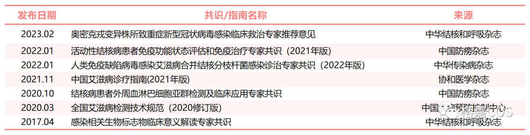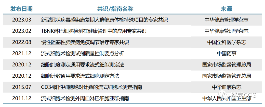 导读 随着流式细胞术的持续深化与日趋成熟,它已经在众多医学检测项目中崭露头角并取得举足轻重的地位。目前流式细胞术在临床检验中的应用范围广泛,主要涉及淋巴细胞亚群、细胞因子、造血干细胞计数、免疫分型、血液肿瘤微小残留等多个领域,为临床诊断、治疗和监测提供了便捷、高效且可靠的新辅助手段。在血液系统疾病诊断和免疫表型分析领域,流式细胞术的应用尤为显著,始终占据着重要的地位,因此,它已成为临床医学领域不可或缺的核心技术之一。 与此同时,相关的临床实践指南(简称“指南”)和专家共识(简称“共识”)的数量随着流式细胞术的飞速发展也不断增长,其关注度日益上升。本文将以表格形式呈现截止至发稿日期与流式细胞术相关的临床实践指南和专家共识。 为帮助各位小伙伴阅读及共同学习,现将指南/共识按照不同的应用领域整理分类,共分为血液疾病和肿瘤、自身免疫、传染性疾病、辅助生殖、儿科疾病、危重急症、细胞治疗和健康管理。 血液疾病和肿瘤篇 2023年国内首部血液肿瘤患者患者淋巴细胞亚群检测专家共识,首次将流式细胞术检测的TBNK和Treg结合起来从而评估患者的免疫功能。归纳并总结两个流式检测项目对于血液肿瘤筛查、复发转移预警及预后评估等给出相关监测方案。 此外FCM在微小残留白血病检测也有重要作用。MRL是白血病复发的根源,因此检测MRL有十分重要的意义: ①指导临床治疗②预测白血病复发③评价自体骨髓移植的净化效果。 自身免疫篇 自身免疫性疾病的显著活动大部分与浆母细胞及短寿浆细胞所分泌的抗体相关。通过使用流式细胞仪对患者外周血中的浆细胞及其表面免疫标志进行分析,对于疾病的诊断、预后预测以及治疗监测均具有一定的指导意义。如外周血浆母细胞水平和系统性红斑狼疮病情变化有良好的相关性。FCM还可以预测和评估靶向药物疗效和疾病复发评估。 中枢神经系统自身免疫性疾病是以自身免疫细胞、自身抗体及其他免疫分子直接或间接攻击神经系统(包括神经元、胶质细胞、髓鞘)为主要致病机制的自身免疫性疾病。其中CNS炎性脱髓鞘疾病、自身免疫性脑炎(AE)是较为常见的中枢神经系统自身免疫性疾病,这一类疾病的早期鉴别诊断、疾病进展监测以及疗效预后评估等很大程度上依赖于实验室辅助检查。在2023年发布的《中枢神经系统自身免疫性疾病相关抗体检测专家共识2022》中就提到相关抗体的检测建议采用CBA的方法进行检测,其敏感度和特异性远高于酶联免疫吸附测定法和间接免疫荧光法。 传染性疾病篇 艾滋病,即获得性免疫缺陷综合征,其病原体为人类免疫缺陷病毒,亦称艾滋病病毒。AIDS 是影响公众健康的重要公共卫生问题之一。CD4+ T 淋巴细胞是 HIV 感染最主要的靶细胞,HIV感染人体后,出现 CD4+ T 淋巴细胞进行性减少, CD4+ /CD8+ T 淋巴细胞比值倒置,细胞免疫功能受损。目前 CD4+T 淋巴细胞亚群常用的检测方法为流式细胞术,可直接获得 CD4+ T 淋巴细胞数绝对值,或通过白细胞分类计数后换算为 CD4+ T 淋巴细胞绝对数。CD4+T 淋巴细胞计数的临床意义: 了解机体免疫状态和病程进展、确定疾病分期、判断治疗效果和HIV 感染者的并发症。 结核病是严重危害人类健康的慢性传染病,但结核病不仅是一种细菌感染性疾病,也是一种免疫性疾病,其发生、发展及转归与机体的抗结核免疫功能状态密切相关。其中,机体固有免疫和适应性免疫发挥了重要的抗结核作用。固有免疫细胞主要包括单核细胞、巨噬细胞、NK细胞等;其在抵抗MTB侵袭,清除巨噬细胞内的MTB方面发挥抗结核防御作用。适应性免疫中,T细胞(包括CD4+和CD8+细胞)介导的细胞免疫应答及其产生的 Th1型细胞因子(如IFN-γ和IL-2)发挥主要的抗结核作用;而B细胞和抗体介导的体液免疫应答发挥辅助的抗结核作用。因此,通过检测结核病患者免疫细胞的数量和免疫功能,评价其免疫功能状态,可为临床制定免疫干预措施提供依据。 辅助生殖篇 随着现代工作生活节奏的加快,都市女性在压力下的健康问题日渐明显,包括月经失调、卵巢早衰和不孕不育等。复发性流产(RSA)是指连续两次或两次以上的自然流产,复发风险与流产次数相关。RSA的病因包括母体免疫、易栓症和生殖道解剖异常等,其中免疫因素是最重要的病因,但仍有约35-44%的RSA患者原因不明。 Treg细胞通过对抗免疫反应中的自身抗体,在免疫系统自身耐受性的维护中发挥着主导作用。当妊娠期Treg细胞缺乏时,会导至母体排斥胎儿而引发妊娠终止。FCM检测显示,RSA妇女外周血Treg细胞表达量减少,抑制能力降低。 其次,如果男方精子质量不好,受精卵质量也就不好,从而也会导至胚胎发育不良而使女方流产。因此除了对精子质量进行常规检测外还要引入一个新指标精子DNA碎片率(DFI)即断裂成单链的DNA碎片占整个精子DNA的比例。如果患者精子DNA损伤严重,不仅会影响精子的质量,造成卵子受精失败而降低怀孕几率(男性不育),而且还会影响胚胎质量,导至胚胎发育不良而形成流产。 儿童篇 PID是免疫功能不全的疾病,由先天性或遗传性因素导至。典型表现是婴儿或儿童期频繁反复发生特殊感染,常见为抗体缺陷为主的免疫缺陷病和联合免疫缺陷病。淋巴细胞亚群分析是早期诊断的重要手段,可评估免疫状态。 2019年发布的《流式细胞术分析外周血淋巴