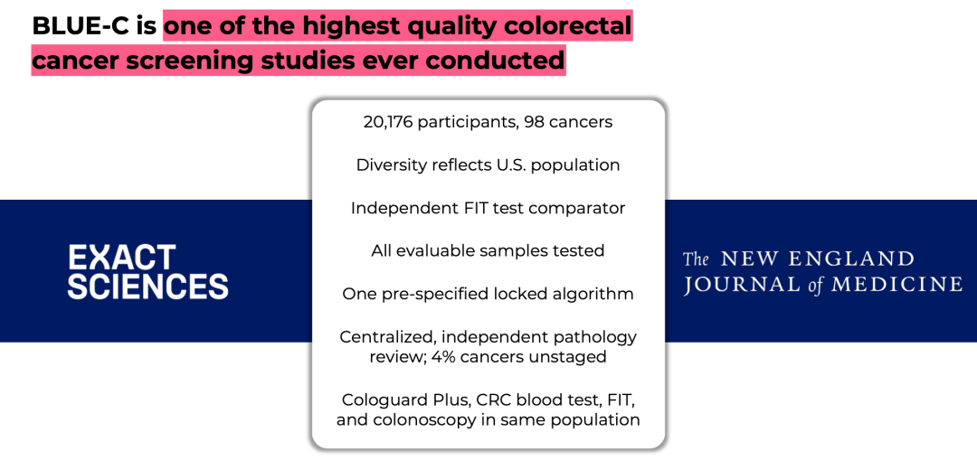 在老奸巨猾的老炮面前,小白虽勇气可嘉,但总显得有点愣头青 历史上首次,NEJM在同一天发表了两个肠癌早筛研究。 从版面上看,血检肠癌早筛的ECLIPSE研究作为“新面孔”占据了更大的篇幅,而代表了Exact Sciences心血的BLUE-C只能屈居次席。 之前也有朋友做了简单的分析,但确实有点过于简单了,完全无法满足我们吃瓜的需求 事实上,这是一次极好的机会,几乎同时期开展的两个研究可以让我们尝试看到肠癌早筛路线之争的当前答案。 可以从这么几个角度来吃瓜: