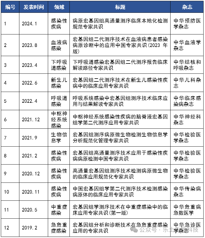 近年来,造成人类感染的病原微生物日益复杂,抗菌药物滥用致使细菌耐药,病原微生物感染已成为全球关注的焦点。据WHO统计,在全球,感染性疾病导至的死亡占全部死因的25%以上,每年1300万儿童死于感染性疾病;在中国,感染性疾病占所有疾病的50%以上。面对感染疾病患者,快速准确的确定感染病原体是后续对症治疗的关键,宏基因组二代测序技术(metagenomics next-generation sequencing, mNGS)为解决这一问题提供了一个可能的突破方向。 mNGS技术不依赖于传统培养、无需预设、无偏好性、可一次性检测已知和未知病原、检测灵敏度高,用于病原微生物检测具有其他方法无法比拟的优势。但是mNGS在临床中的应用也存在一定的局限性,如操作复杂、缺乏统一标准、解读困难等。 为提高mNGS技术应用于感染性疾病病原诊断的质量,有效实施质量管理,国内陆续在急危重症感染、中枢神经系统感染、呼吸道感染、新生儿感染、血液病感染,以及生物信息学分析等领域制定了mNGS宏基因组二代测序应用指南与专家共识。本文汇总了2019-2024年在中华系列杂志发表的12篇mNGS临床应用指南与专家共识及其内容概要,供大家参考应用(数据截止日期2024年4月)。 目录 一、病原宏基因组高通量测序临床本地化检测规范专家共识 摘要 感染性疾病严重危害人类生命健康,快速准确检测病原体是有效治疗和精准防控感染性疾病的关键环节。传统的病原学检验技术覆盖的微生物种类少,难以满足临床需求。宏基因组高通量测序(mNGS)理论上可同时检测所有已知基因序列的病原体,在很大程度上提高了临床疑难危重感染、罕见和新发病原体感染的诊断水平和救治能力。在个体化医疗需求的大背景下,新技术的实验室自建检测能够持续提高临床诊治水平。由于mNGS技术平台研发起点高、操作流程复杂,为了保证该技术合理应用,保障患者医疗安全,本文在临床检验、感染、危重症及体外诊断等领域的专家就mNGS-LDT的流程搭建、性能确认、质量控制、报告审核等方面形成共识并提出规范要求和建议。 主要内容 1)mNGS实验室建设基本要求 2)湿实验流程搭建 3)干实验流程搭建 4)mNGS的性能确定 5)临床诊断性能评价 6)mNGS的质量管理 7)mNGS推荐使用的人群、时机和疾病 8)mNGS样本的选择及采集 9)报告解读 10)LDT项目备案与管理 二、宏基因组二代测序技术在血液病患者感染病原诊断中的应用中国专家共识 摘要 病原宏基因组二代测序(mNGS)是一项覆盖病原谱广且高通量的检测技术,已在临床感染领域得到了广泛的应用。在血液病患者感染病原诊断方面,mNGS检测具有阳性率高、受到抗菌药物干扰小、覆盖病原广的优势。然而,目前尚无mNGS在血液病感染病原诊断中应用的指南或专家共识。为优化血液病患者病原mNGS检测适应证及规范报告解读,在参考血液病领域感染诊治及病原mNGS相关指南等的基础上,中华医学会血液学分会抗感染学组特邀请血液学、病原mNGS检测等领域专家共同制定此专家共识。 主要内容 1)血液病患者感染临床送检mNGS适应证 2)样本采集与质量控制 3)报告解读 三、下呼吸道感染宏基因组二代测序报告临床解读路径专家共识 摘要 近年来,宏基因组二代测序(mNGS)技术在下呼吸道感染(LRTI)病原诊断领域得到了广泛应用,国内临床医师在mNGS的临床应用方面已积累了一定的经验和证据。但mNGS在LRTI病原诊断中的适用场景仍缺乏规范,mNGS报告的临床意义解读也缺乏专业的指导意见。该共识基于mNGS在我国LRTI病原诊断方面的应用实践,梳理mNGS在LRTI应用领域的瓶颈问题,汇总本领域专家意见,明确了mNGS在LRTI病原诊断中的适用场景,为mNGS报告临床意义提供了一条合理可行的解读路径,以期规范mNGS在LRTI中科学合理应用。 主要内容 1)LRTI病原学诊断方法学 2)患者的选择 3)标本选择、采集和运送规范及质量评估 4)mNGS的关键实验室技术参数 5)mNGS报告解读 6)多学科会诊(MDT) 四、宏基因组二代测序技术在新生儿感染性疾病中的临床应用专家共识 摘要 近年来基于高通量测序平台的宏基因组二代测序(mNGS)技术在新生儿感染性疾病领域得到了广泛应用。为了更加规范mNGS技术在新生儿重症监护病房的应用,中华医学会儿科学分会新生儿学组和中华儿科杂志编辑委员会组织专家以国内外循证医学证据和最新进展为基础,从mNGS技术的临床适应证、标本采集与转运、报告解读等方面给出建议。 主要内容 1)mNGS在NICU感染性疾病中的应用 2)标本采集和转运 3)报告解读 五、呼吸系统感染中宏基因组测序技术临床应用与结果解读专家共识 摘要 宏基因组二代测序(mNGS)已被广泛应用于感染性疾病的病原检测。然而,呼吸系统感染具有特殊性:病原组成复杂、标本类型选择多样、存在感染与定植、不同标本类型结果解读原则不尽相同等。为规范临床送检适应证,选择合适的送检标本以及恰当地解读报告,特组织专家对上述问题进行讨论并撰写专家共识,以期为呼吸系统感染中mNGS技术临床应用及报告解读提供专业的指导和帮助。 主要内容 1)呼吸系统感染临床送检适应证 2)呼吸系统感染送检标本类型选择 3)呼吸系统感染mNGS检测结果解读 4)现存问题及展望 六、中枢神经系统感染性疾病的脑脊液宏基因组学第二代测序应用专家共识 摘要 宏基因组学第二代测序能够非靶向地检测临床标本中的病原体核酸,在中枢神经系统感染性疾病