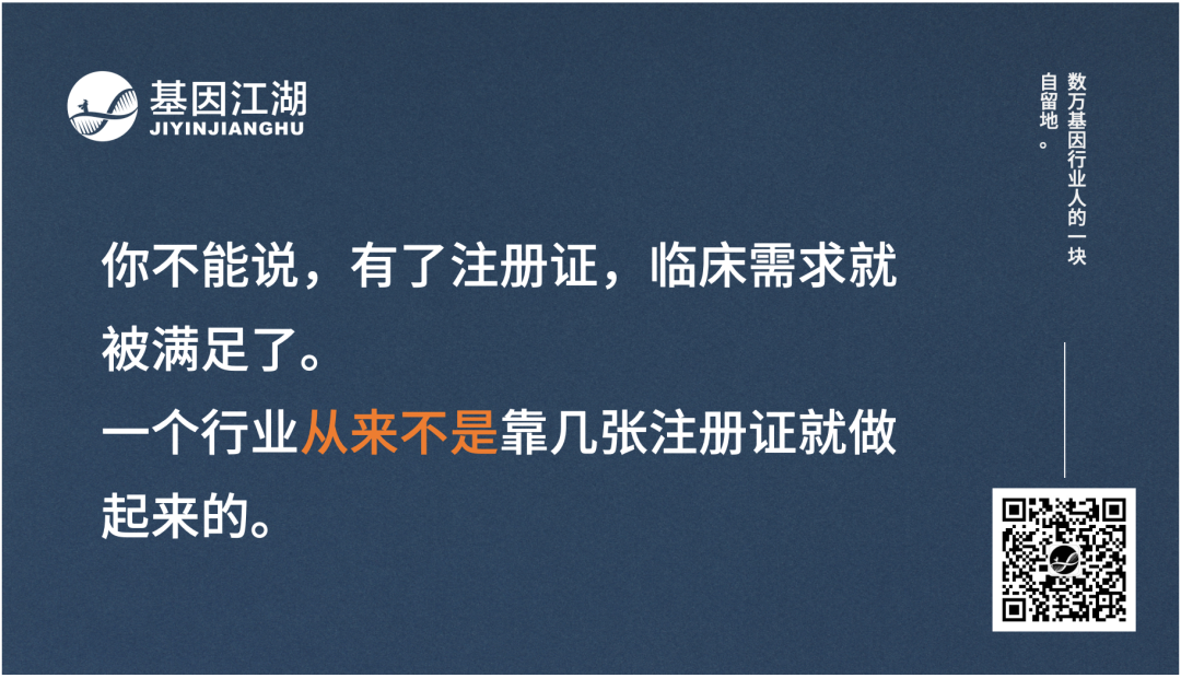 2015年前后,市场上铺天盖地地认为NGS是要取代所有的东西,但是现在又一棒子把NGS全部打倒。这说明什么呢?说明(PCR、NGS谁好)这个问题本身可能是错了。之所以有这样的判断,是因为我们用财务数字,来衡量一个技术。如果(用这个技术的)公司都融到了钱、赚到了钱,或者这些公司市值高,那我们就认为这个技术很好;而融不到钱了、或销售不好了,我们就说这个技术不好。你想想这个技术也太倒霉了,(对它的好坏判断),跟着一个公司的销售额走,跟着一个市场估值走。真实应用场景下,临床对于“成本、性能、时间、操作”四个方面的基本需求。具体而言,“价格的可行性、检测的准确性、检测的及时性、操作的便利性”。没有上述这些要素的成熟,行业不会快速爆发。早几年还是晚几年获证,并不会影响行业格局。但过去几年,大量资本涌入进来,大家并没有安心投入研发,把大量的时间、大量的资金投入到这种商业竞争上面去了,每家公司投入了少则五六个亿,多则十几个亿,去换市场销售额。反过头来看,四个基本要素“成本、性能、时间、操作”,一个都没满足。这造成了行业看起来发展很快,但行业生态其实非常脆弱。融资环境、政策环境稍有变化,这个行业就出现问题。如果把这些钱安安心心的做研发,可能短期内公司估值受一点影响,但今天反而会非常淡定。但在当时那个时代背景下,包括我们自己,也没办法说,我只做研发,不去商业化。你如果想要拿到融资,可选择的路并不多。03