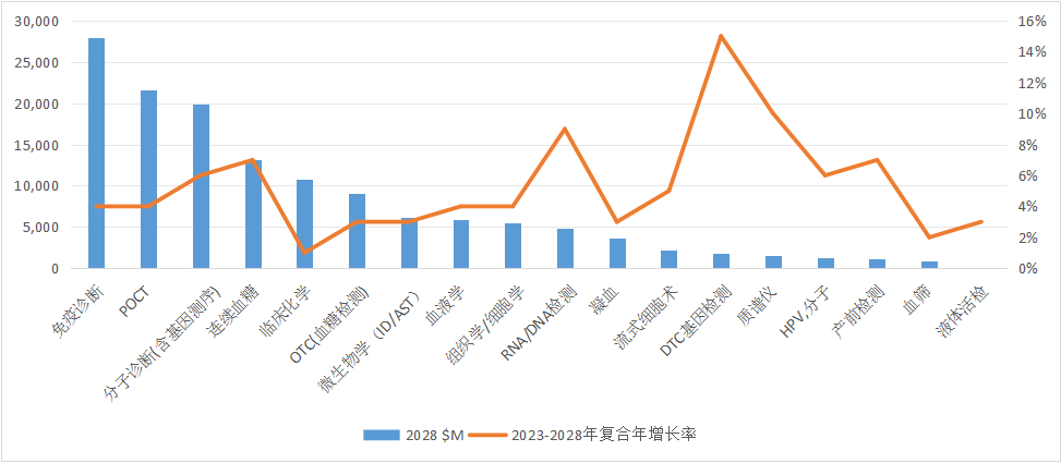未来五年,免疫诊断、POCT、分子诊断、血糖检测、临床生化仍然是IVD规模最大的五个细分领域,占比超80%。区别在于,已从过去的生化、免疫为王,到如今免疫仍为大势,POCT、分子诊断逐渐上位的趋势。 · END · |