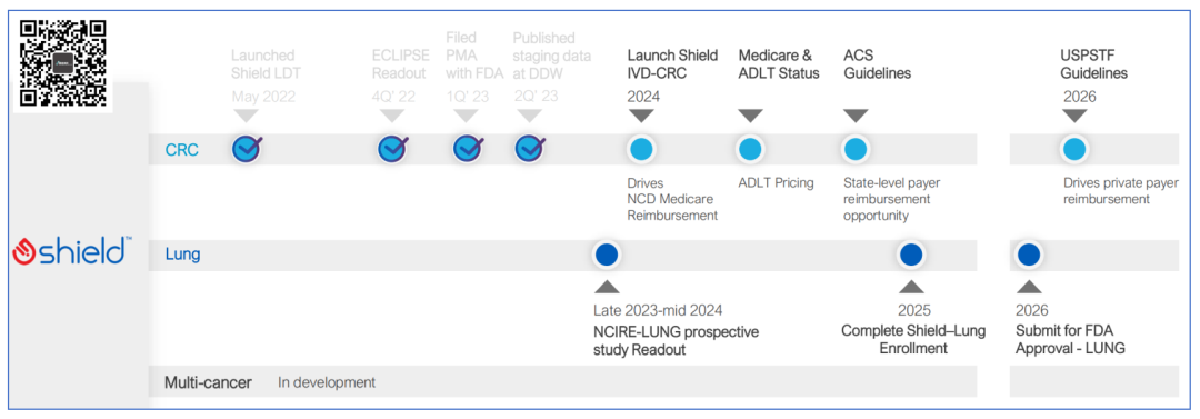 第一,Guardant Health基于血液的肠癌早筛产品Shield预计2024年5月23日评审,预计2024年拿到FDA的上市许可。