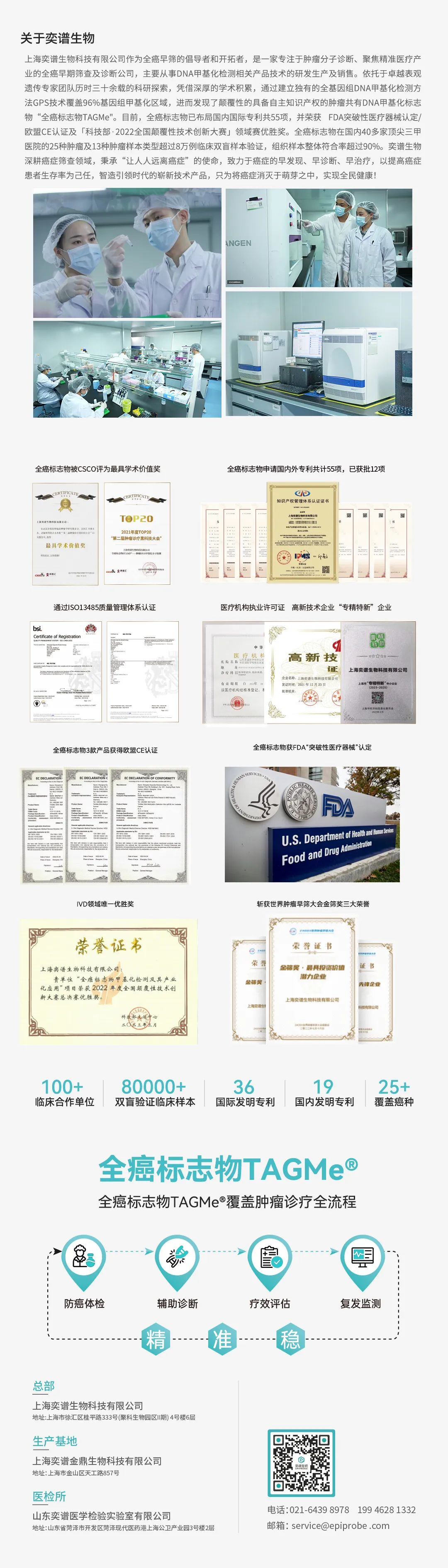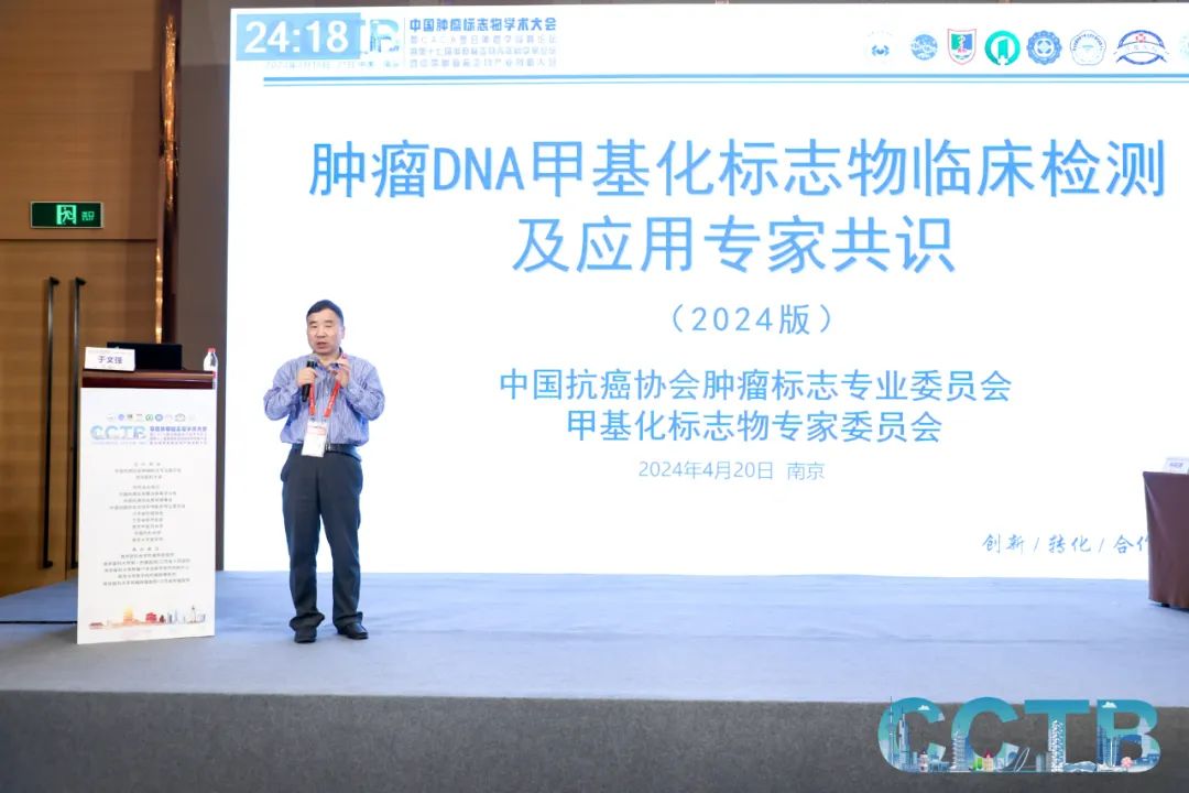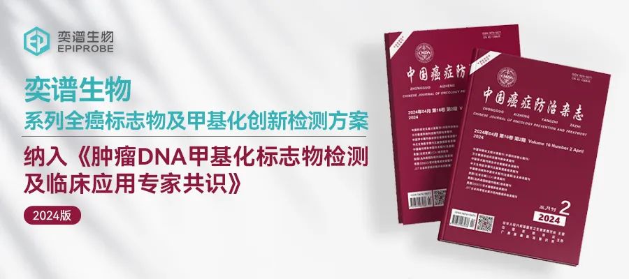 《肿瘤DNA甲基化标志物检测及临床应用专家共识》发布会现场 金陵四月,蓊蔚洇润,共襄盛举。2024年4月20日,由中国抗癌协会肿瘤标志专业委员会甲基化标志物专家委员会历经半年时间从大纲撰写、初稿撰写、交叉审稿、初稿修订、编辑部审稿、共识投票等程序凝结而成的《肿瘤DNA甲基化标志物检测及临床应用专家共识》(下简称“共识”)在2024CCTB中国肿瘤标志物学术大会肿瘤甲基化标志物论坛隆重举行共识发布会,来自全国各地的多位肿瘤领域的专家同道云集一堂,共同见证此次共识的发布。《共识》发布会的圆满举行,标志着这一汇聚最新循证医学证据和专家智慧的临床指导性文件正式走进中国实践,谱写肿瘤DNA甲基化标志物检测及临床应用的全新篇章!其中,上海奕谱生物科技有限公司(以下简称“奕谱生物”)系列全癌标志物及甲基化创新检测方案纳入《肿瘤DNA甲基化标志物检测及临床应用专家共识》,应用导航定位测序(guide positioning sequencing,GPS)技术筛选到的PCDHGB7、HIST1H4F、SIX6 基因和基于全癌标志物的Epiprobe TAGMe系列检测产品成为本专家共识的璀璨亮点。 《共识》编写专家组组长复旦大学于文强教授 中国抗癌协会肿瘤标志物专业委员会为了推动DNA甲基化标志物在肿瘤管理中的应用,提高临床医技人员及科研人员对其重要性的认识,同时规范检测流程,确保检测结果的准确性和可靠性,组织检验、病理、临床与基础科学在DNA甲基化领域内的专家学者,共同编写了《肿瘤DNA甲基化标志物检测及临床应用专家共识》。旨在为临床医生、研究人员及检测人员提供一套关于DNA甲基化标志物检测及其临床应用的指导性建议,促进该领域的标准化发展,优化个性化肿瘤诊疗策略,为患者的早筛早诊以及精准诊疗提供决策依据。本次《共识》正式发布是一个划时代的重要时刻,具有里程碑式的意义,共识凝聚了几十位专家的智慧和心血,经过大量的文献查阅和资料收集,反复探讨和修改最终成文定稿并正式见刊。该共识于2024年4月19日在《中国癌症防治杂志》(2024年04月第16卷第2期)发表,希望共识的发表能为临床肿瘤防治实践提供有力武器。《共识》发布会现场:2024CCTB肿瘤甲基化标志物论坛主席 在肿瘤筛查场景中,共识分别提到了DNA甲基化标志物在单癌种筛查和多癌种筛查中的应用。DNA甲基化标志物在单癌种筛查中的应用——DNA甲基化技术为肿瘤早筛提供了一种高效、非侵入性且具有广泛应用潜力的筛查方法,实现了对宫颈癌等的早诊早筛。DNA甲基化技术也可以应用于宫颈癌筛查的高危分流,能对人乳头瘤病毒(HPV)阳性患者进行初步分流。上海交通大学附属国际和平妇幼保健院团队建立了纳入3251例hrHPV阳性女性的前瞻性研究队列,对HPV检查的剩余样本进行PCDHGB7基因甲基化检测,与细胞学检测相比,PCDHGB7 甲基化检测减少了62.2%的非16/18型高危hrHPV阳性女性的转诊,显示出更为优越的特异度(92.1% vs 74.9%)。DNA甲基化标志物在多癌种筛查中的运用——基于全癌标志物策略的多癌种筛查应用:应用导航定位测序(guide positioning sequencing,GPS)技术,通过对全基因组DNA高精度和高覆盖度的甲基化位点进行筛查,于文强团队挖掘了基于DNA甲基化位点的全癌标志物,这类DNA甲基化标志物可用于多种癌症的筛查,其中通过全基因组DNA甲基化数据挖掘的HIST1H4F基因在17种癌症中呈异常高甲基化。奕谱生物团队筛选的全癌标志物PCDHGB7 在不仅在TCGA数据库的17种癌症类型中都呈高甲基化,后续还在13种临床肿瘤样本中得到验证。SIX6 基因在10种常见癌症类型的 678 份临床样本表现出普遍的高甲基化,其中,SIX6 基因高甲基化诊断宫颈癌、子宫内膜癌及尿路上皮癌的ROC曲线下面积(area under the curve,AUC)分别为0.99、0.94及0.93,表明SIX6 高甲基化是肿瘤进展的早期事件,可以应用于肿瘤的临床早期筛查。