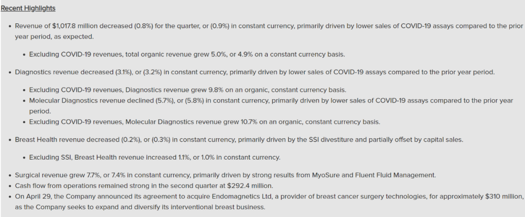 全球领先的医疗技术公司豪洛捷(Hologic),近期宣布了一项重大重组计划,涉及其两个地区的诊断业务部门产品停产和工厂关闭。这一决策导至公司在芬兰和法国裁减190名员工,并将相关研发和运营活动转移到美国加利福尼亚州的圣地亚哥。裁员计划预计将在2025财年第二季度完成,遣散费总额预计为1220万美元。  此次重组计划是多方面因素共同作用的结果。在2024年2月2日提交给美国证券交易委员会(SEC)的季度10-Q表格中,豪洛捷概述了这一战略重组,包括产品停产和关闭某些国际设施工厂。尽管SEC文件没有透露具体会有多少员工受到影响,但豪洛捷已经开始与相关工会就关闭工厂及其对员工的影响进行讨论。豪洛捷的首席财务官Karleen Oberton曾表示,大规模裁员是领导失败的表现,这与公司最近的裁员活动形成了鲜明对比。据悉,由于冠状病毒肺炎测试的销量下降,豪洛捷的诊断部门收入在季度内下降了20%,分子诊断收入下降了25%。此前,公司在2022年4月关闭了位于康涅狄格州丹伯里的一家工厂,并将生产转移到纽瓦克和马尔伯勒的一个工厂,预计这一过渡将在2025财年第三季度完成,相关遣散费总额约为590万美元。据豪洛捷的年度报告显示,其公司的员工人数近年来一直有所波动,在2022年和2023年总共解雇了约128名员工,到2023年9月,全球员工总数为6,990人。除了豪洛捷,西门子医疗也宣布关闭其PCR快速诊断部门,影响近100名员工。豪洛捷(Hologic)是一家成立于1985年的全球性医疗技术公司,总部位于美国马萨诸塞州的马尔伯勒。作为全球分子诊断行业的领军企业,豪洛捷自成立以来就专注于女性健康领域的发展。公司的核心业务领域包括分子诊断、医疗成像系统和妇女外科检查产品,其中3D钼靶技术在全球乳腺癌筛查和诊断市场中占据超过50%的份额,尤其在美国市场,这一比例更是高达70%以上,确立了其在该领域的市场优势。 乳腺癌作为全球第一大癌症,豪洛捷凭借其完备的乳腺癌筛查、诊断及妇科微创手术治疗解决方案,在全球女性健康领域占据了重要位置。此外,公司通过并购策略不断扩大其业务范围,近十年来收购了包括Acessa Health、Faxitron Bioptics、Biotheranostics、Focal Therapeutics在内的多家公司,这些并购行为显著增强了Hologic在全球诊断市场的竞争力。 在财务表现方面,豪洛捷展现出强劲的增长势头,2017至2022年间营收年复合增长率达到10%。公司的全球布局策略也为其市场地位提供了支撑,在11个欧洲国家设有分支机构,并在巴西、哥斯达黎加、加拿大、亚洲和大洋洲等地拥有工厂和国际分支机构。近年来,全球分子诊断市场增长稳定,市场规模显著扩大。据统计,年均复合增长率维持在5%至7%之间,而2022年受到新冠疫情的推动,全球市场规模更是达到了308.9亿美元。预计到2024年,全球分子诊断市场规模将达到130.1亿美元,到2029年将达到202.2亿美元,预测期内(2024—2029年)复合年增长率为9.22%。 据Medical design and outsourcing最新排名显示,在这样的大环境下,豪洛捷尽管面临挑战,也仍然是全球第26大医疗设备制造商,年销售额接近49亿美元。在2024财年Q2报告中,豪洛捷的总收入为10.2亿美元,与去年同期相比下降了1%;除去新冠相关销售额,第二财季收入同比增长5%。诊断收入为4.501亿美元,较去年同期下降约3%;不包括COVID-19销售额,诊断收入实现了增长。乳腺健康业务营收基本持平,妇科手术业务同比增长8%,骨骼健康业务收入有所下降。豪洛捷预计2024财年全年收入将在40亿美元至40.5亿美元之间,每股收益预计为3.45美元至3.55美元,非GAAP每股收益预计为4.02美元至4.12美元。在医疗技术行业不断演变的浪潮中,豪洛捷的重组计划不仅是对当前市场挑战的应对,也是对未来机遇的积极布局。尽管短期内公司面临财务压力和人员变动的双重考验,但其长期的战略规划和对创新的持续投入,预示着豪洛捷有望在分子诊断市场的下一个增长周期中占据更加有利的位置。随着全球分子诊断市场的不断扩大和深化,豪洛捷凭借其在女性健康领域的深厚积累和并购策略,有望继续引领行业创新,让我们共同期待豪洛捷为全球患者带来更多、更优质的医疗解决方案。