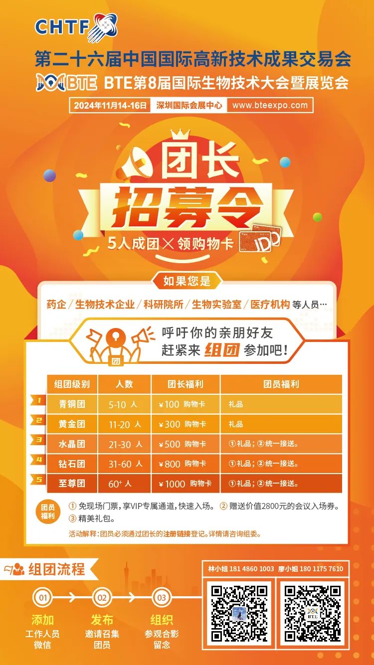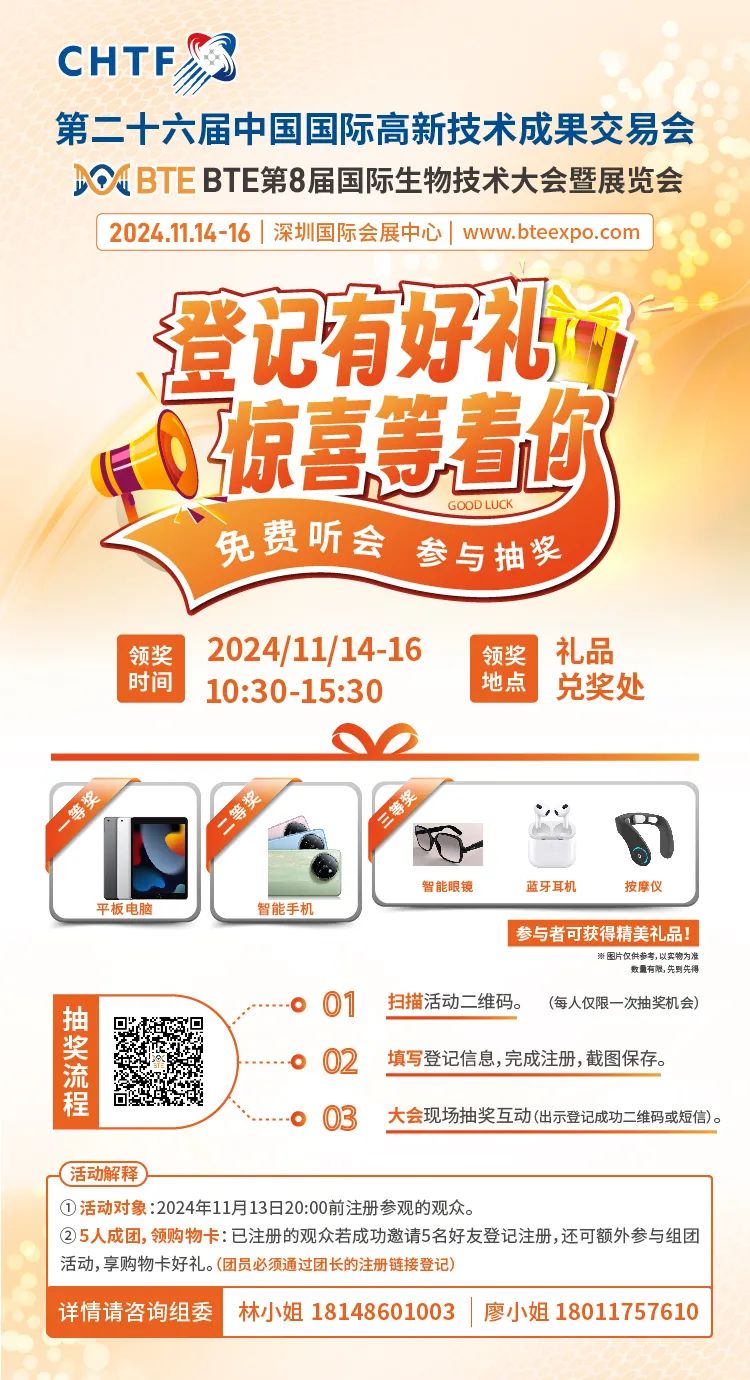 尊敬的各位参展商、观众、参会嘉宾及合作伙伴: 感谢大家长期以来对BTE第8届国际生物技术大会暨展览会的支持和关注。我们荣幸地宣布,BTE第8届国际生物技术大会暨展览会融入第二十六届中国国际高新技术成果交易会(以下简称高交会),将于2024年11月14—16日在深圳国际会展中心举办,并设置展示专区。作为高交会的重要部分之一,BTE第8届国际生物技术大会暨展览会将贯彻深圳“20+8”产业政策,加快新质生产力发展,赋能产业高质量发展,为参展商和观众提供更多元化、更高层次的交流合作的高端平台。 高交会是国家级、国际性高新技术成果交易会,历届高交会经国务院批准,由商务部、科技部、工业和信息化部、国家发展改革委、农业农村部、国家知识产权局、中国科学院、中国工程院与深圳市人民政府共同主办。自1999年以来,高交会已成功举办25届,成为国家创新体系的重要组成部分,是我国高新技术领域对外开放的重要窗口和高新技术成果交流交易的重要平台。 本届高交会展览面积约40万平方米,预计有来自100余个国家和地区的5000余家知名企业与国际组织参展,围绕信息技术、新能源汽车、高端装备制造、高端医疗、生物医药、专精特新、低空经济、半导体、新材料、节能环保、绿色低碳等领域,全方位展示中外高新技术发展的趋势,发布高新技术最新成果。观众组织方面,将结合企业品类和参展商的市场需求,制定核心买家一对一邀约方案,预计全球90余个国家及地区超50万人次的专业观众到场。 深圳已成为我国生物医药产业的重要城市,基本形成较为完整的医疗健康产业链,汇聚一批国家级龙头企业和创新型企业。同时,深圳“20+8”产业政策赋能生物医药、高端医疗器械产业高质量发展,加快新质生产力发展。深圳国际会展中心作为现代化、国际化的会展场馆,拥有完善的设施和优质的服务,将为大家提供舒适、便捷的参展体验。 对于因延期和地点变更给大家带来的不便,我们深表歉意,并感谢各位参展商、观众、参会嘉宾及合作伙伴对大会的支持和厚爱。我们将竭尽全力,打造生物技术与高新技术交汇的国际化、品牌化、专业化、市场化盛会。 请有意向参展的单位联系我们报名,电话020-83953283,官网www.bteexpo.com。期待与您共聚鹏城,共享机遇,共襄盛会!