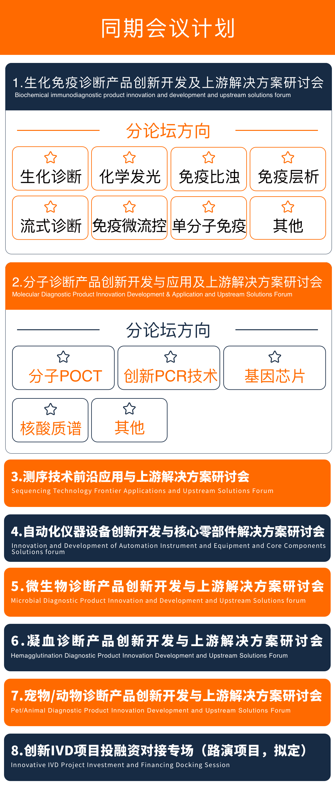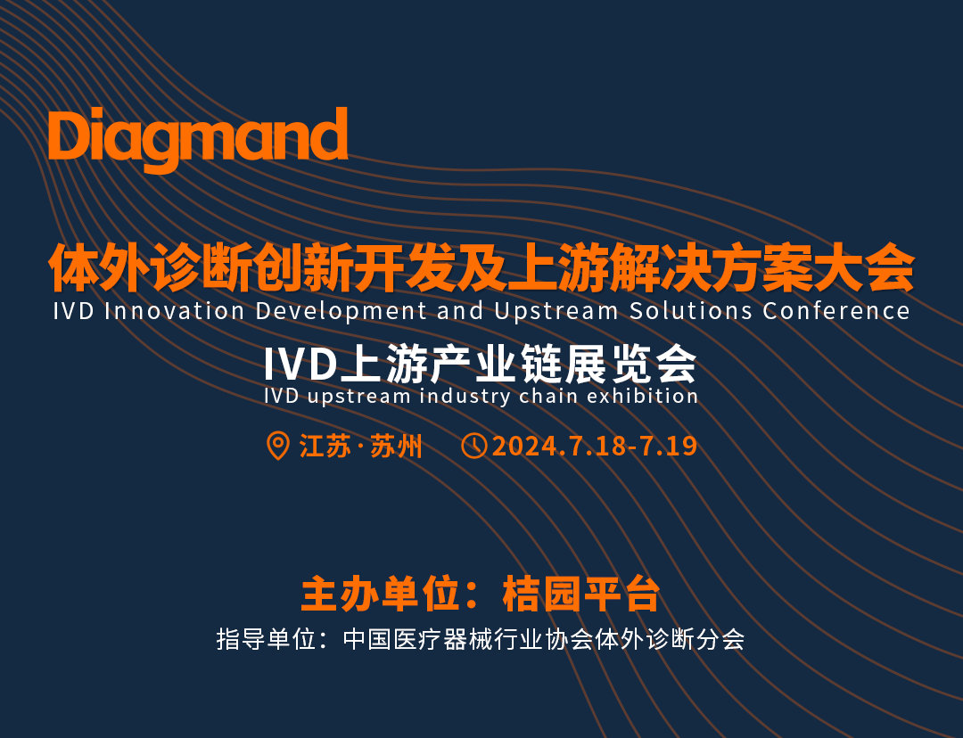 会议名称:Diagmand体外诊断创新开发与上游解决方案大会&IVD上游产业链展览会会议时间:2024年7月18-19日 会议地点:苏州 主办单位:桔园平台 指导单位:中国医疗器械行业协会体外诊断分会 协办单位:BioBAY、体外诊断价值圈、IVD从业者网、测序中国、基因江湖、陈在不在、竞逐IVD原料江湖、丁香通