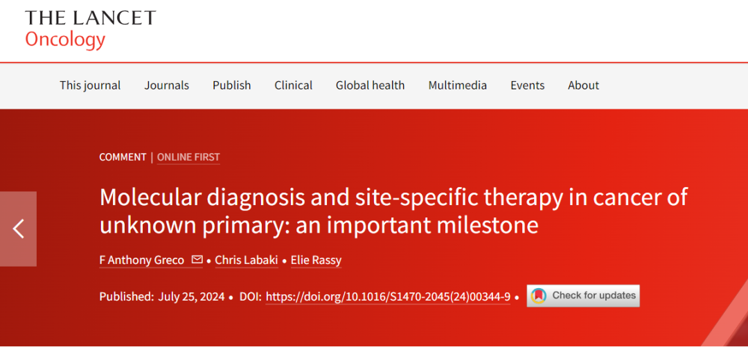 美国Sarah Cannon肿瘤研究所F Anthony Greco教授评论文章同期发表于《柳叶刀·肿瘤学》