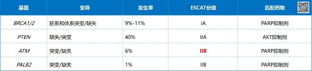 ▲ 晚期前列腺癌检测基因列表(ESCAT I/II级)