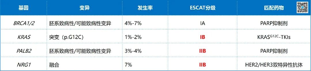 ▲ 晚期胰腺导管腺癌检测基因列表(ESCAT I/II级)