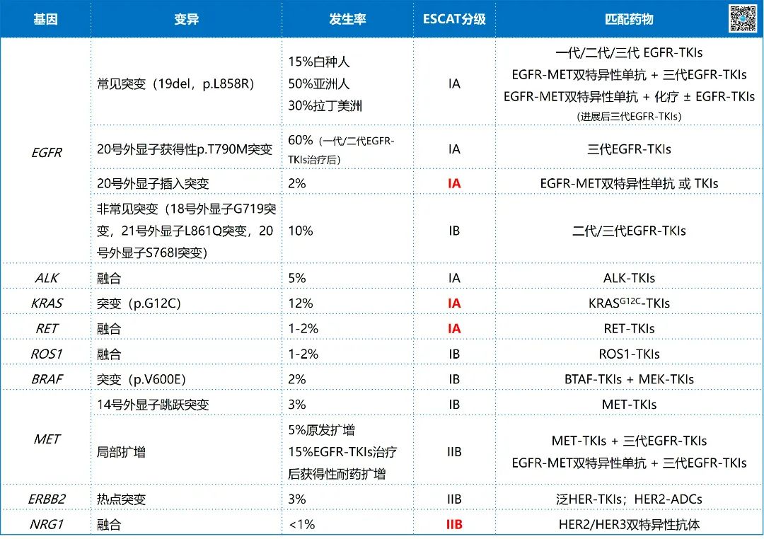 ▲ 晚期非鳞状NSCLC检测基因列表(ESCAT I/II级)