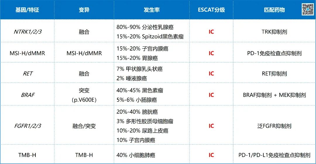▲ 晚期甲状腺癌检测基因列表(ESCAT I/II级)