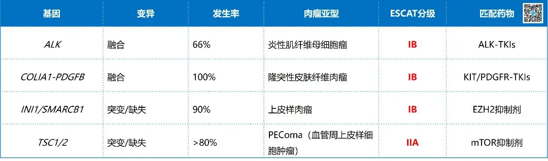 ▲ 晚期软组织肉瘤检测基因列表(ESCAT I/II级)
