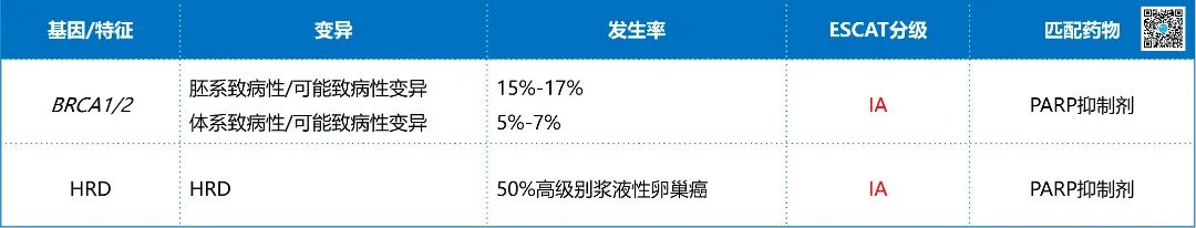 ▲ 晚期卵巢癌检测基因列表(ESCAT I/II级)