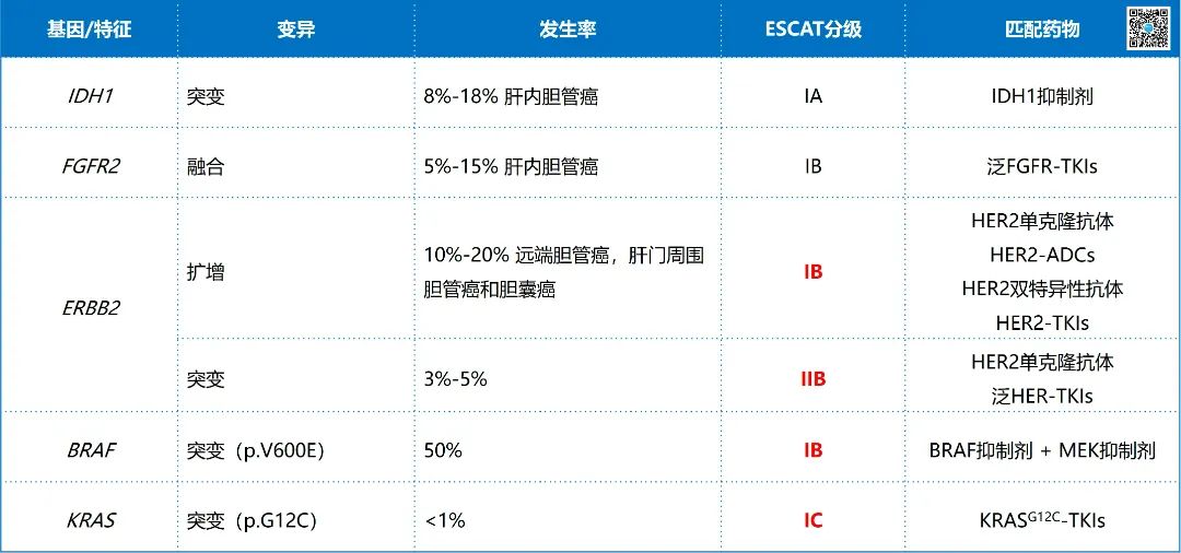 ▲ 晚期胆管癌检测基因列表(ESCAT I/II级)