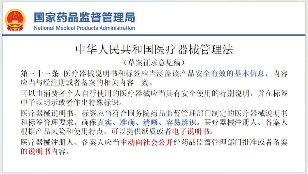 前几天,国家药监局综合司公开征求《中华人民共和国医疗器械管理法(草案征求意见稿)》意见,一石激起千层浪,引来各路解读和畅想。抛开注册证转让、违法拘留这些重磅点,其中一条关于公开说明书的条款引起了小编的注意。 ➣ 当前怎么查找IVD说明书? 做过竞品调研的童鞋应该都有所感受,当前收集IVD产品说明书还是需要些手段的。 途径1:官方途径——CMDE 最官方的途径要数技术审评中心了,这里会不定期公开一些创新产品的审评报告,而多数IVD产品的审评报告最后会附带产品的说明书。 当然了,不会所有的IVD产品都公示审评报告,主要是走创新、优先审批或者国内首例的情况会公开。 不过《中华人民共和国医疗器械管理法(草案征求意见稿)》第五十九条提到,“批准上市医疗器械的审评结论和依据应当依法公开,接受社会监督。” 不知道这个公开的信息中,是否会包含产品的说明书呢?现在不好说。 途径2:医院/医检所途径 《医疗器械监督管理条例》要求“医疗器械应当有说明书、标签。说明书、标签的内容应当与经注册或者备案的相关内容一致,确保真实、准确。” 所以,所有销售的IVD产品都配有说明书。如果我们有医院检验科、医检所科室或者经营单位的资源,想要收集上述单位在使用的相关产品说明书,还是比较容易的。 途径3:以采购之名 通常情况下,以医检所采购的名义,联系你感兴趣产品的销售(尤其是代理),成功索取产品说明书的概率还是比较大的,毕竟开单的机会比什么都重要。 途径4:留言区 相信各路大神还能提供很多途径,期待留言哦! ➣ 有没有公开说明书的先例? 如果说IVD产品公开说明书是开先河之举,那么,有没有其他公开说明书的先例?毕竟,疫苗和药品在医疗器械之前早已立法了。 疫苗说明书公开现状 果然,早在2019年,《中华人民共和国疫苗管理法》第二章第二十一条就明确规定,“国务院药品监督管理部门应当在其网站上及时公布疫苗说明书、标签内容” 那么,在哪里公开呢?在我们平时查找医疗器械注册证的界面下,挪到药品板块可以发现有个专门的数据库——疫苗说明书和标签数据库(测试版)。 这个数据库能不能用?搜索一下闺女前几天刚打过的狂犬疫苗,点进去一试,还是可以的。 当然了,也不是每一个查看点进去都能查询到。说明这个测试版还是有很多bug的,尤其是新冠的疫苗,暂时一个也没搜到。 而且,以“疫苗”为关键词,总共只搜索到147条信息,想必还是有很多的疫苗说明书没有维护到数据库中的。看来立法的要求执行起来也是需要时间的,IVD的公开估计不会来得这么快。 ➣ 药品的说明书有没有公开? 既然疫苗的说明书已经立法要求药监局公开,那么,药品的说明书有么有公开计划? 还真有,早在2021年,药监局就曾答复过吴英代表的建议,提到“国家药监局将持续推进建立药品说明书公开的有关制度,以提高药品说明书的可读性,减少错误用药,保护患者用药安全。” 那么有关制度现在建设的怎么样了? 2023年10月,国家药监局发布药品说明书适老化及无障碍改革试点工作方案,为优化药品说明书管理,满足老年人、残疾人用药需求,解决药品说明书“看不清”问题,根据《中华人民共和国药品管理法》《中华人民共和国无障碍环境建设法》,国家药监局决定在部分口服、外用等药品制剂中开展药品说明书适老化及无障碍改革试点。 其中提到“落实持有人主体责任,加强说明书管理和维护……鼓励持有人在其官方网站上提供药品说明书(完整版)的电子版,满足不同群体用药需求。” “鼓励”这个词比医疗器械管理法草案里的“应当”要柔和很多。 ➣ IVD产品为什么要公开说明书? 当然,疫苗、药品和医疗器械,三者的性质是不一样的。消费者直接购买疫苗和药品,会涉及说明书查看的需求,尤其是药品。而医疗器械和IVD,除了自测产品外,我们通常是向医院买服务,由医院采购试剂产品,所以真正查看说明书的应该是检验科的医生。 我们去检验科做完检查,甚至都不知道用的啥仪器和检测试剂,那么,为什么医疗器械和IVD要公开说明书呢?这个留待各位战友讨论。 ➣ 电子说明书 除了公开说明书这个要求外,小编还注意到电子说明书的提法。这个可能对于我们IVD从业者的影响会更直接一些。 比如单支为最小销售单元的试剂,都要像药店的小瓶子外边再捆一个说明书,着实很难受,操作起来也很麻烦,如果通过二维码将电子说明书标示在标签上,那么生产环节会高效很多,减少了印刷说明书带来的能源消耗;不必折叠和组装说明书;也不必再一份份的数说明书做物料平衡……好处多多。 而电子说明书如何落地,药品有一个可以借鉴的地方, 根据《国家药监局关于发布药品说明书适老化及无障碍改革试点工作方案的公告》(2023年第142号),为推进相关配套规范性文件起草制定工作,在国家药品监督管理局的部署下,药审中心组织制定了《药品说明书(简化版)及药品说明书(大字版)编写指南》《电子药品说明书(完整版)格式要求》。对电子说明的格式进行了如下的要求。 结 语 可以预见,未来,在行业高质量发展的道路上,在保证人们安全、有效、可及使用医疗器械的要求下,IVD说明书将会逐步公开,公开的途径大概率是企业官网;而电子说明书也将逐步推广,期待共同朝着更高效务实的方向迈进。 |