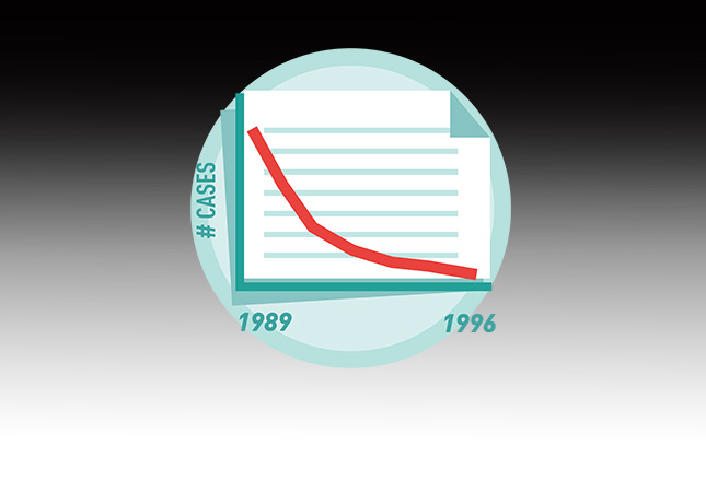 截止到1996年,每年报告的新发丙型肝炎病毒感染例数下降超过80%,很多人将这种下降归功于美国血液供应的例行检测,以及为了遏制丙肝的传播而提出的新的预防和控制感染的措施。 1998年:CDC扩大丙型肝炎检测建议