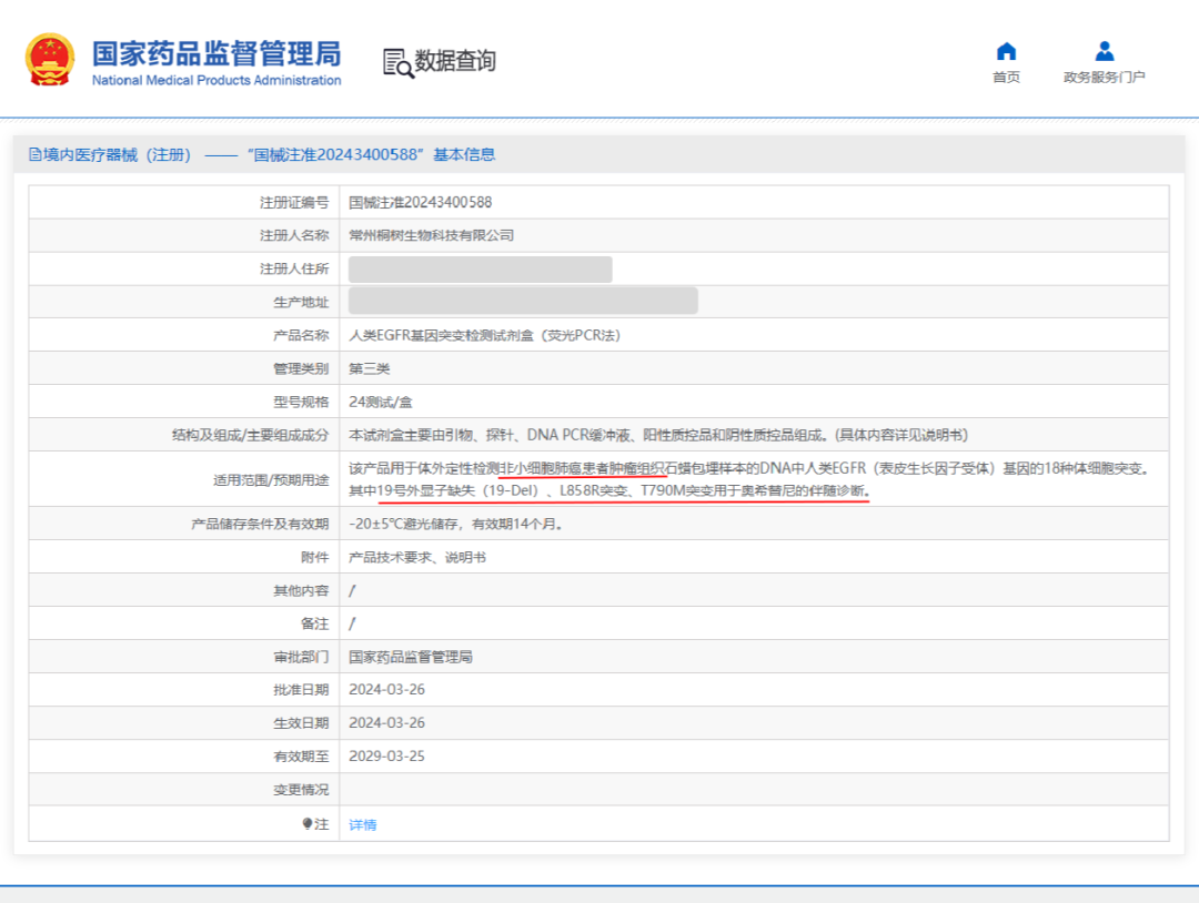 2024年3月桐树基因研发的全位点奥希替尼伴随诊断试剂盒成功上市,填补国内空白。改试剂盒采用非ARMS-PCR法,利用MASS专利技术,精准识别EGFR基因突变,为肺癌精准治疗提供可靠依据。