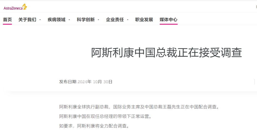 10月30日晚,医药行业最震撼的消息来了:阿斯利康官网称,阿斯利康全球执行副总裁、国际业务主席及中国总裁王磊正在接受调查。过去几个月里,围绕阿斯利康的种种消息终于尘埃落定。(摘自阿斯利康中国官网)