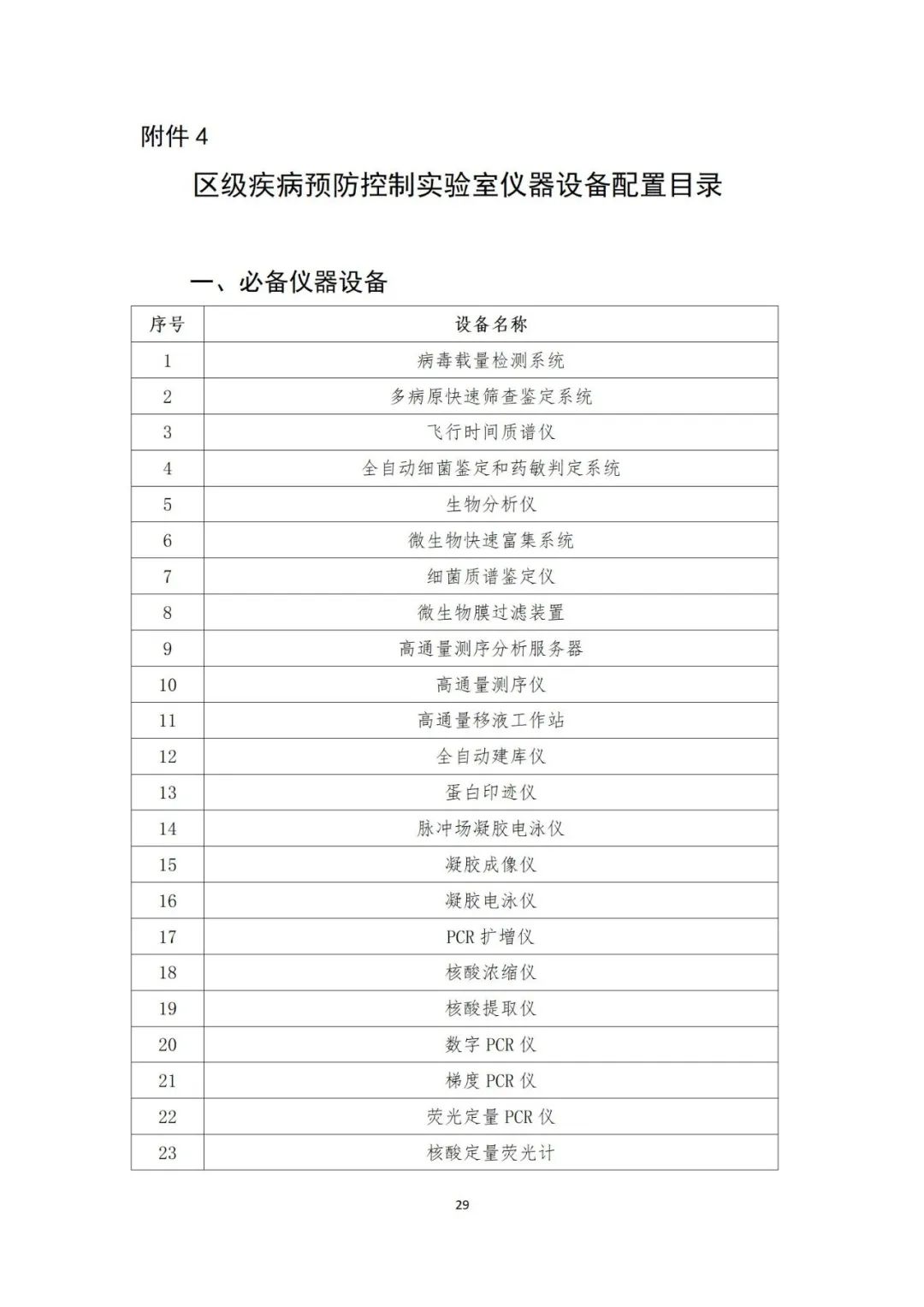 11月18日,上海市卫健委发布了《关于印发《上海市区级疾病预防控制中心能力建设标准(2024版)》的通知》,明确至2025年末,本市区级疾病预防控制中心应具备的相应工作能力。涵盖化学发光、流式、酶标、各类质谱、色谱、各类PCR扩增仪、病毒载量检测系统、生化仪、建库仪、测序仪、离心机等等。针对实验室检测能力明确常规病原体、寄生虫和病媒生物检测鉴定参数提升至480项以上。常见感染性病原体核酸每日检测能力达到2000件,每周测序能力达到60件,食品、水、环节样本每周检测能力达到500件。常规理化和放射检验检测参数提升至270项以上。鼓励各区疾病预防控制中心结合辖区需求与机构能力基础,储备新型健康危害物、人体生物标志物等特色检测项目。
