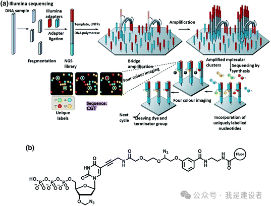 SBS,特别是以可逆终止子为核心的测序手段,成为Illumina或者说高通量测序(也就是所谓的二代测序)的代名词可逆终止子带有聚合的阻断基团和可断裂荧光基团标记,通过掺入这样的可逆终止子来提示被测序的碱基信息,通过去除阻断基团来进行循环。