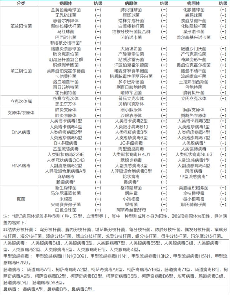 基于靶向捕获联合新一代测序技术,不依赖于传统的微生物培养,直接对临床样本中的核酸进行富集,再进行高通量测序,然后与数据库进行比对分析,根据比对到的序列信息来判断样本包含的病原微生物种类,能够快速、客观地检测临床样本中较多的病原微生物(包括病毒、细菌、真菌、寄生虫等),为临床诊断提供依据。