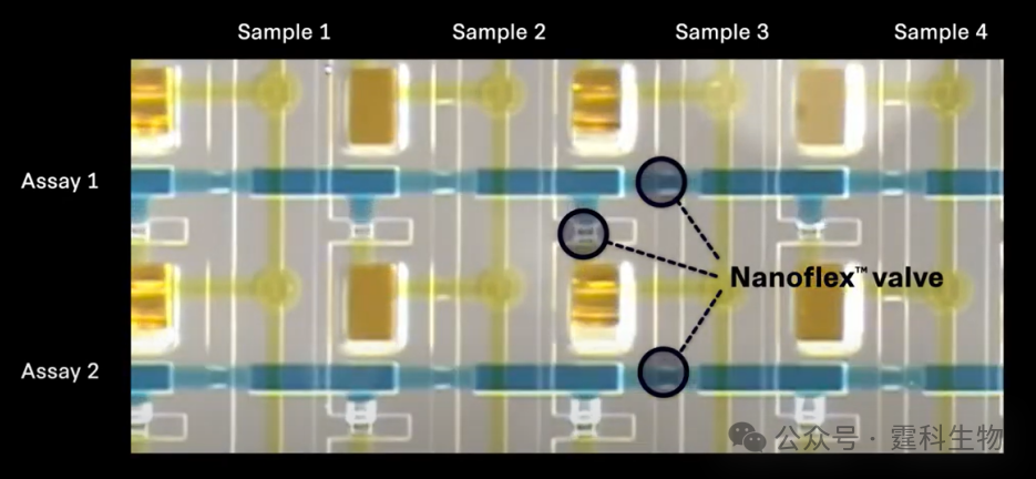 2、PCR反应腔室的进液控制依赖Nanoflex阀,这是Standard BioTools公司的核心技术。这种阀门是一种软胶状,可以由电信号控制打开或关闭流路。
