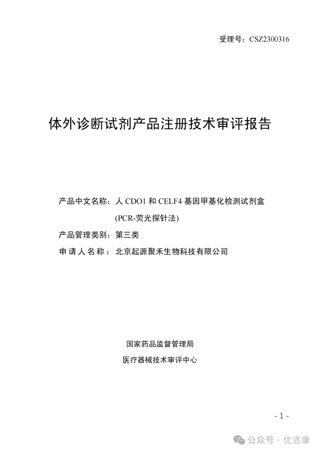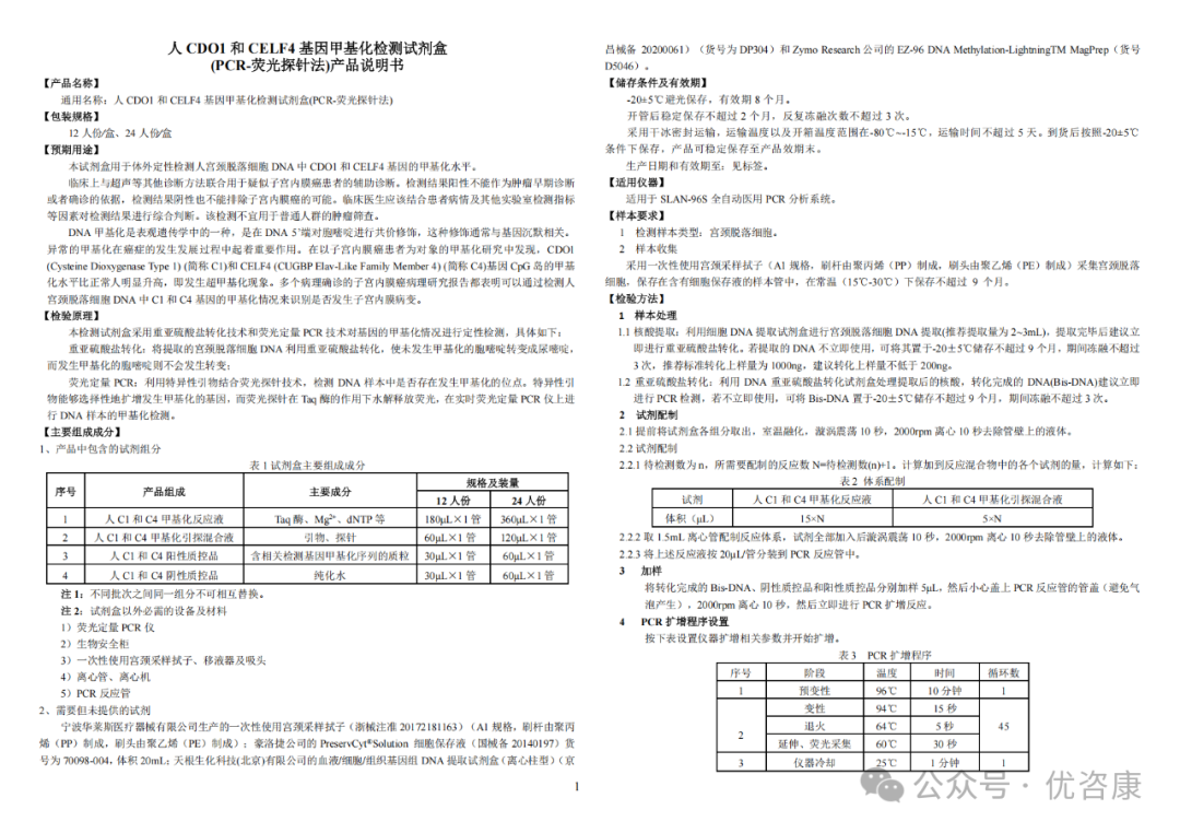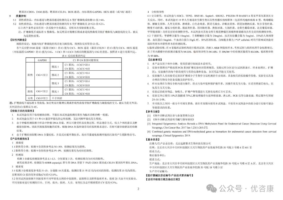 2024年12月17日,国家药品监督管理局批准了北京起源聚禾生物科技有限公司的“人CDO1和CELF4基因甲基化检测试剂盒(PCR-荧光探针法)”产品注册申请,注册证编号:国械注准20243402610。其预期用途为:本试剂盒用于体外定性检测人宫颈脱落细胞DNA中CDO1和CELF4基因的甲基化水平。