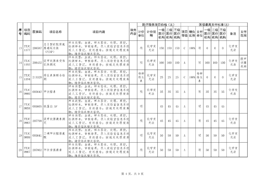 各区医保局、卫生健康委、人社局,各有关单位: 为进一步规范医疗服务项目管理,结合我市实际,经研究论证,现对红细胞膜蛋白电泳等项目价格和医保支付标准进行规范调整,有关事项通知如下: 一、规范调整红细胞膜蛋白电泳等项目价格和医保支付标准,具体内容见附件。 二、同步调整《天津市基本医疗保险、工伤保险和生育保险诊疗项目目录暨服务设施标准》,基本医疗保险和工伤保险支付标准按照调整后的规定执行。 三、各有关医疗机构应当严格按照规定向患者提供服务并收取费用,规范价格行为,及时做好信息系统更新维护和价格公示等相关工作。 四、各单位要落实责任,确保政策平稳实施,并密切关注政策执行情况,跟踪政策实施效果。 本通知自2024年12月20日执行。 此次调整将游离甲状腺素、游离三碘甲状腺原氨酸、甲状腺球蛋白、甲状腺结合球蛋白、甲状腺球蛋白抗体 、甲状腺过氧化物酶抗体、甲状腺结合能力、组织多肽抗原、胃癌抗原、人绒毛膜促性腺激素、性激 素结合球蛋白、血清骨钙素测定、总Ⅰ型前胶原氨基端延长肽(PINP)、促甲状腺素受体抗体测定、维生素族联合 检测、雄烯二酮测定共16项计价说明由“电化学发光法”规范为“化学发光法”。 随着安徽集采的甲功的开标在即,天津走在了前列,先统一了化学发光的方法学,再同步降价。且降幅有的达到了近42%!如游离甲状腺素由50元降为40元,三碘甲状腺原氨酸由60元降价到50元,甲状腺素由60元降价到35元,促甲状腺素由60元降价45元等。 天津作为此次28省联盟之一,终端甲功降费,进一步压缩了其市场容量,甲功出厂端4-5元/人份的价格,可能还得进一步压缩! 不可否认,集采也好,DRG/DIP也罢,其最终目的都是控制医保支出,集采是抓手,天津医保局此次直接先降甲功收费,终端最先难受,医疗机构肌自负盈亏的背景下,恐怕主任又得找渠道重新谈话控制耗占比了!结果最后苦的还是众多渠道和那96个厂家了! 天津价格调整20241203.pdf |