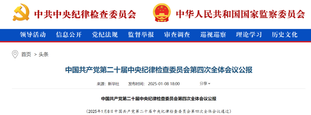 为期3天的第二十届中纪委第四次会议刚刚结束并发布了会议公报,公报总结了2024年的反腐工作和2025年的反腐工作任务。- 全会指出,2024年,……纵深推进反腐败斗争,深化拓展金融、国企、能源、烟草、医药、体育、基建工程和招投标等重点领域反腐,严肃查处政商勾连腐败,深入查处新型腐败和隐性腐败,坚持受贿行贿一起查,深化以案促改促治,有力铲除腐败滋生的土壤和条件。……