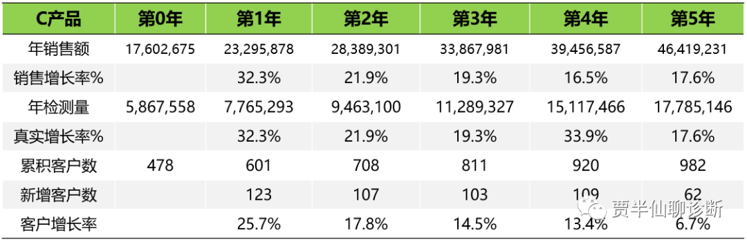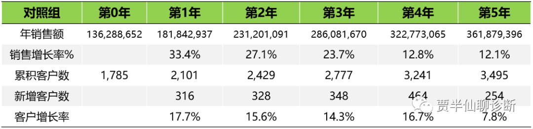在第五年再次降价20%时,销售额同比下降6.7%,远远低于同期的对照组。其次试剂检测量增长也乏力,只有16.7%,新增客户数上也是这几年的新低。