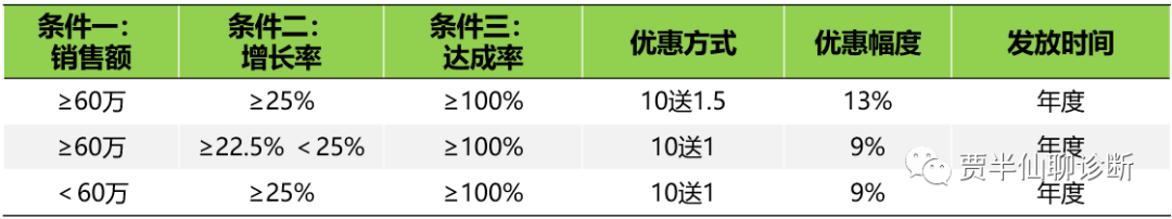 又称台阶式返利,主要是设定几个条件,在代理商同时或部分满足时给与额外的不同程度的折扣,这种方式是厂家更愿意的合作模式。
