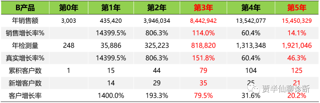 第三年第一次降价15%,B产品销售额增长率114.0%,远远高于对照组,检测数量也是达到了151.8%的增长,新增客户数也是历年新高。与A产品相似的是降价第二年也迎来了爆发式增长。
