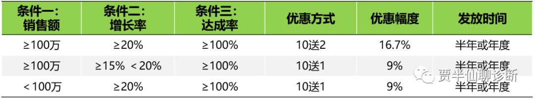 这种方式主要是针对一些成本相对稳定而利润空间较高的体外诊断试剂,目的是牺牲一部分利润,追求增量的折扣方式