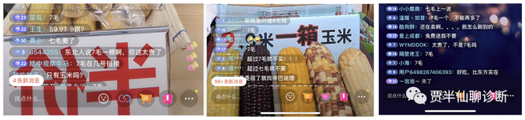 本文无意评价谁对谁错,但是也足以说明定价效应之一-“锚定价格”的威力无边,半仙为了了解其效应,愣是足足看了两天的KS和DY的玉米直播,全屏都在刷“7毛”,没有一个直播间幸免。