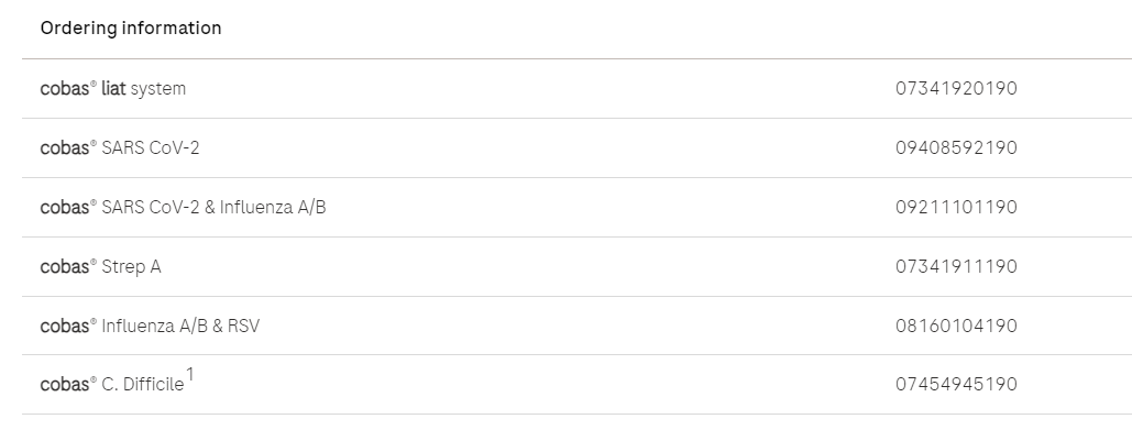 - 2021年6月,Roche获得了FDA的Cobas SARS-CoV-2核酸测试的EUA,该测试用于Cobas Liat设备。