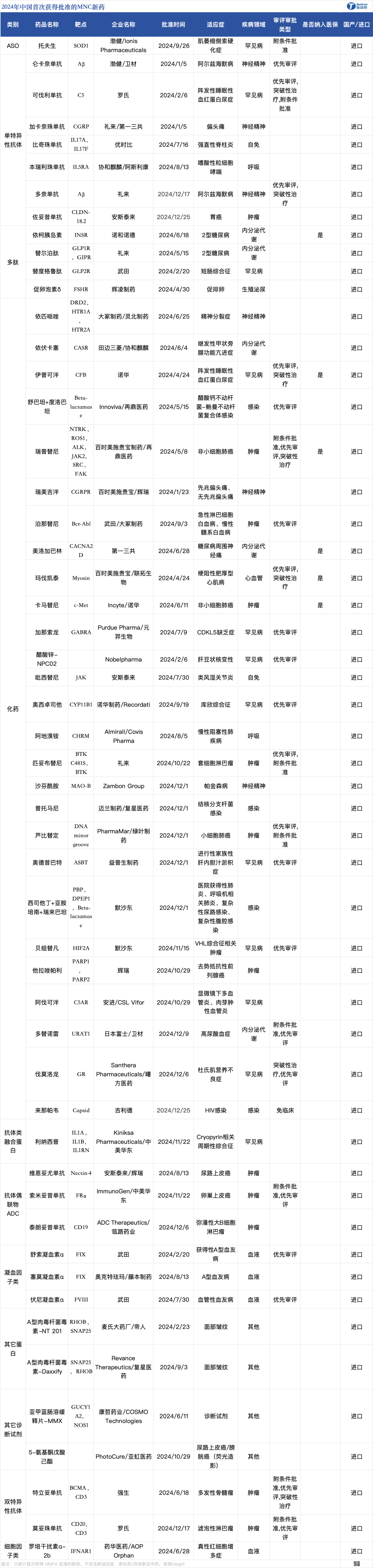 2024年跨国药企在中国获批53款新药
