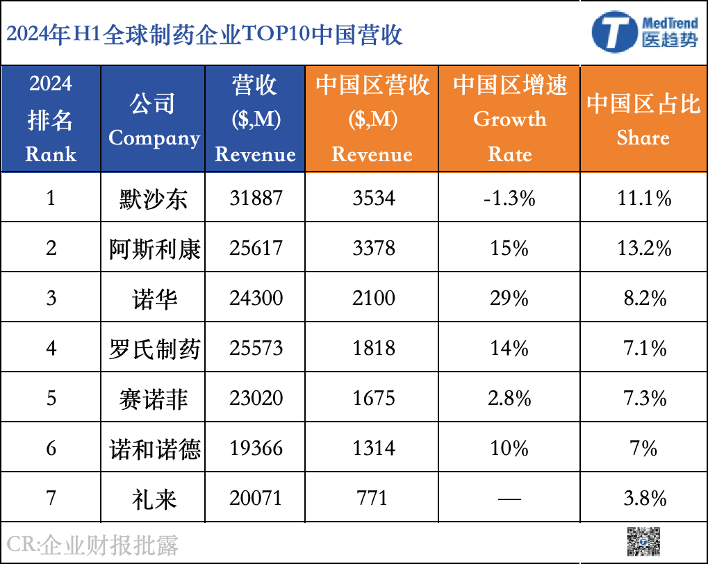*大部分MNC只公布2024H1中国区营收,未公布前三季度中国区营收,所以以H1分析MNC2024年在中国区的表现。