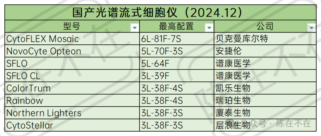 荧光光谱流式,2024年贝克曼库尔特,安捷伦,安捷伦,凯乐加入,市场可见产品已达10家。