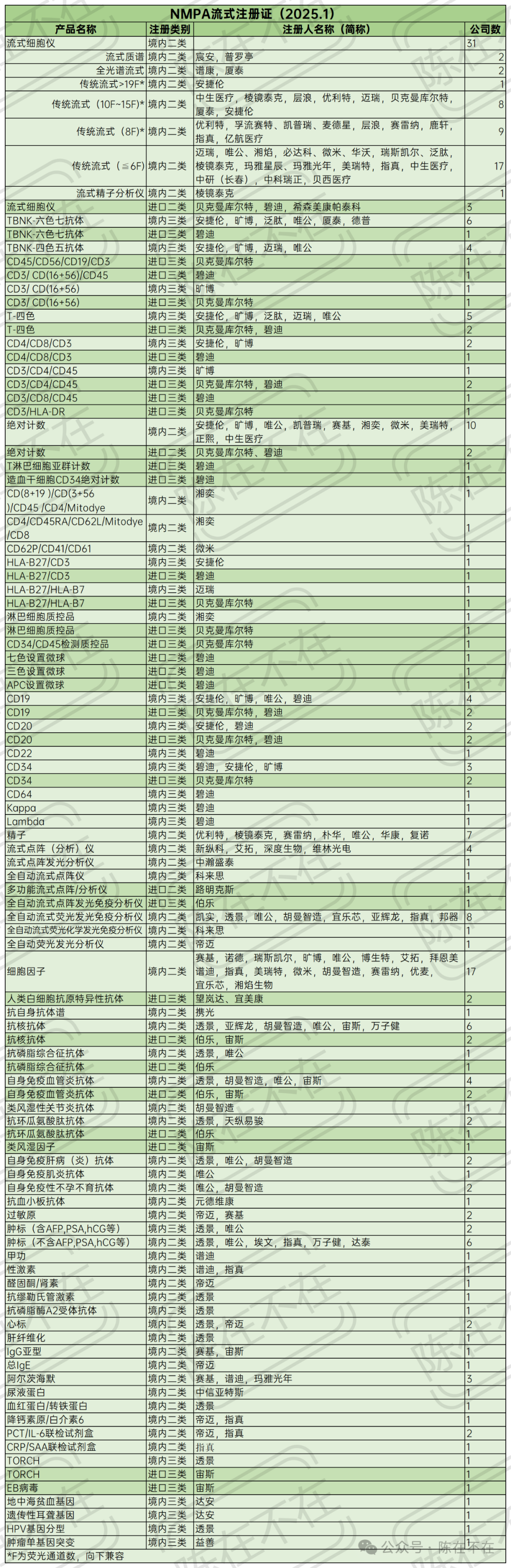 • 细胞流式临床仪器公司已达33家,其中境内注册证公司31家,进口注册证公司3家。